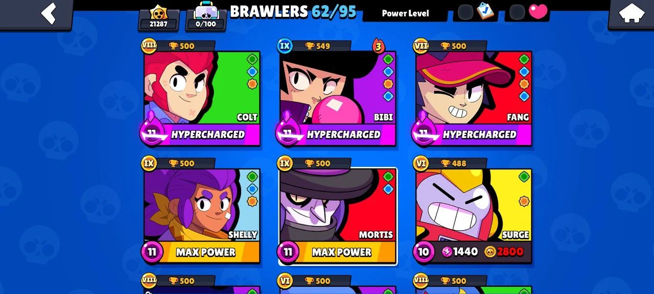 CHALLENGER COLT ⚡ 21,287 TROPHIES ⚡ 3 HYPERCHARGED 💫 5 MAX 💥 62/95 BRAWLERS ✨ 4 LEGENDARY 🎯 59 OG SKINS 🎨 S.B SHELLY 💥 STARA 💥