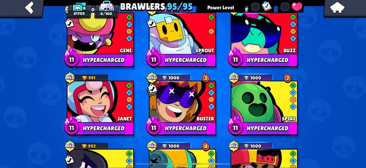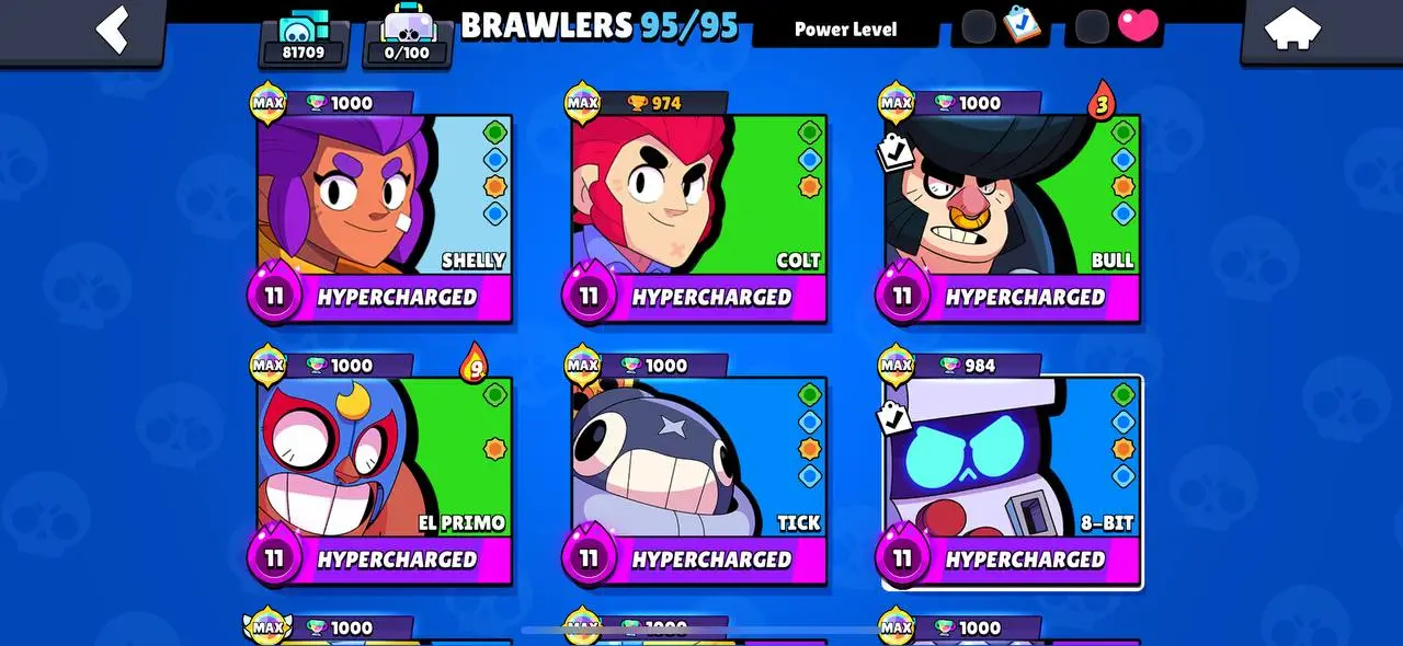 [RAREST] 2x PRESTIGE 💥 VIRUS 8-BIT , HEROINE BIBI , FURIOUS FANG , ROYAL AGENT COLT 🕸️ 81500+ TROPHIES 🏆 51 POWER MAX BRAWLERS ⚡️ 31 HYPERCHARGED 🔥 265+ SKINS ⚡️ 95 BRAWLERS