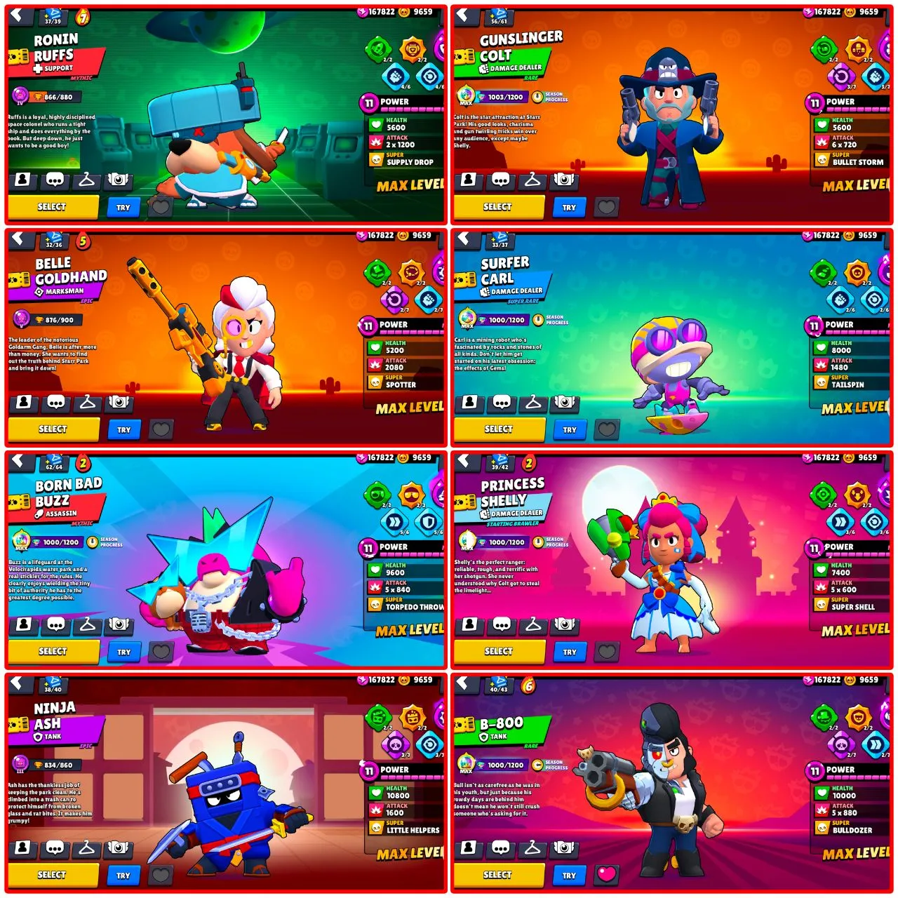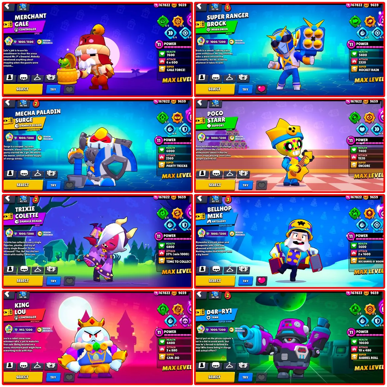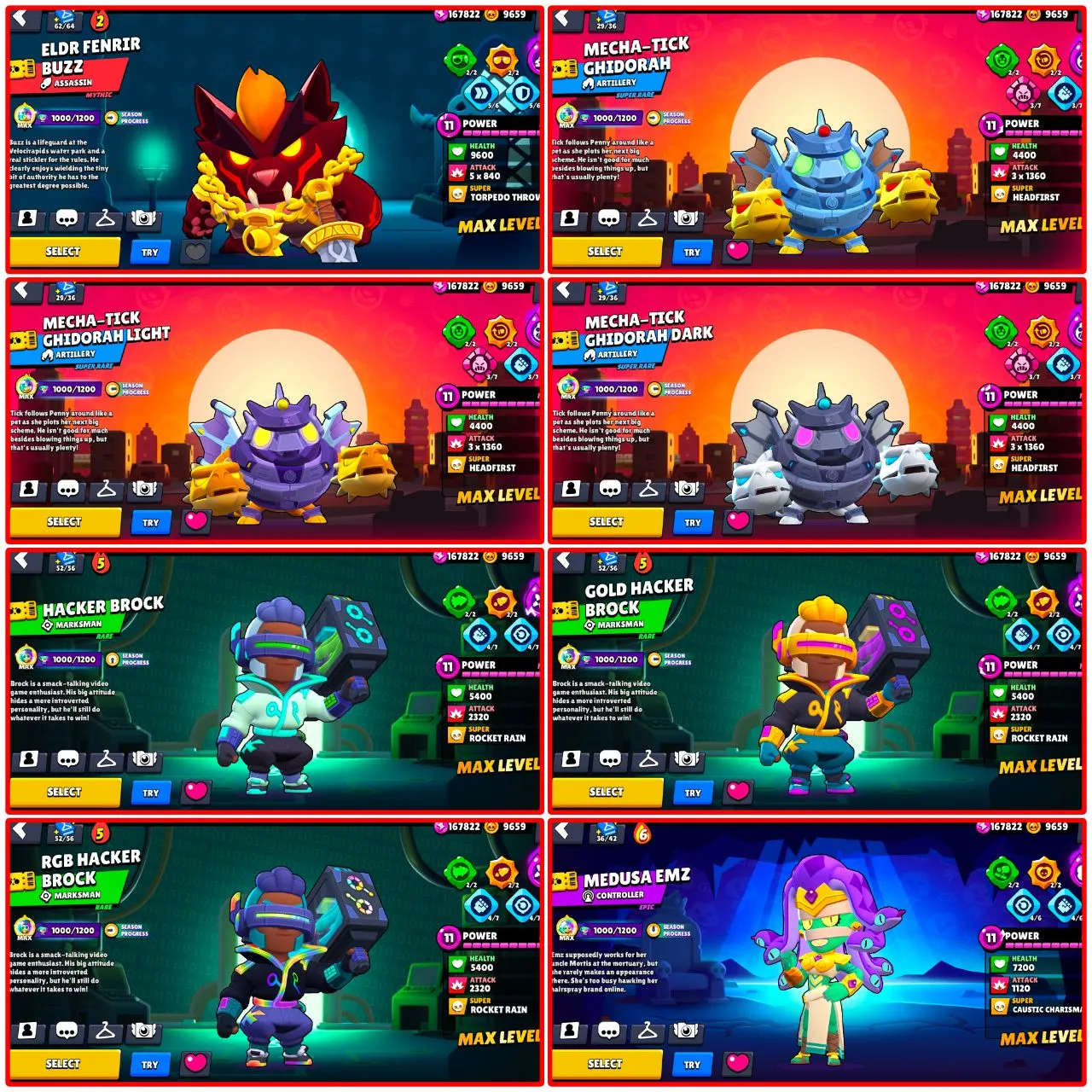 RAREST ACCOUNT IN THE WORLD 🌎 669 SKINS 🤯 ALL BRAWL PASS FROM SEASON 1 🥶 ALIEN FAME ✨ 90K TROPHIES 🏆 95 MAXED BRAWLERS ✅ 88 HYPERCHARGED 😎 MERCHANT GALE 🔥 WITCH SHELLY ⭐ WEREWOLF LEON 😎 INSTANT DELIVERY 🚚