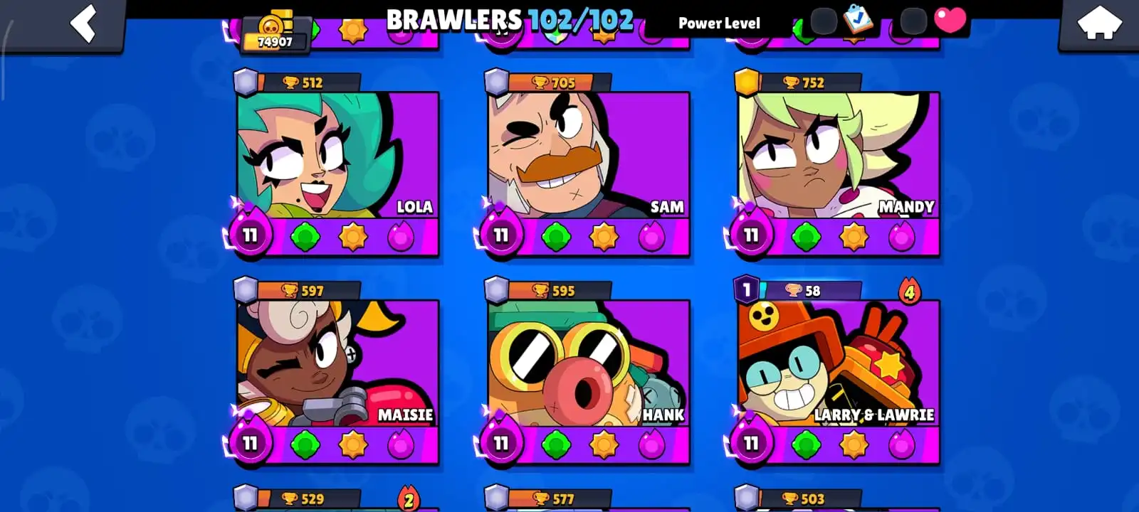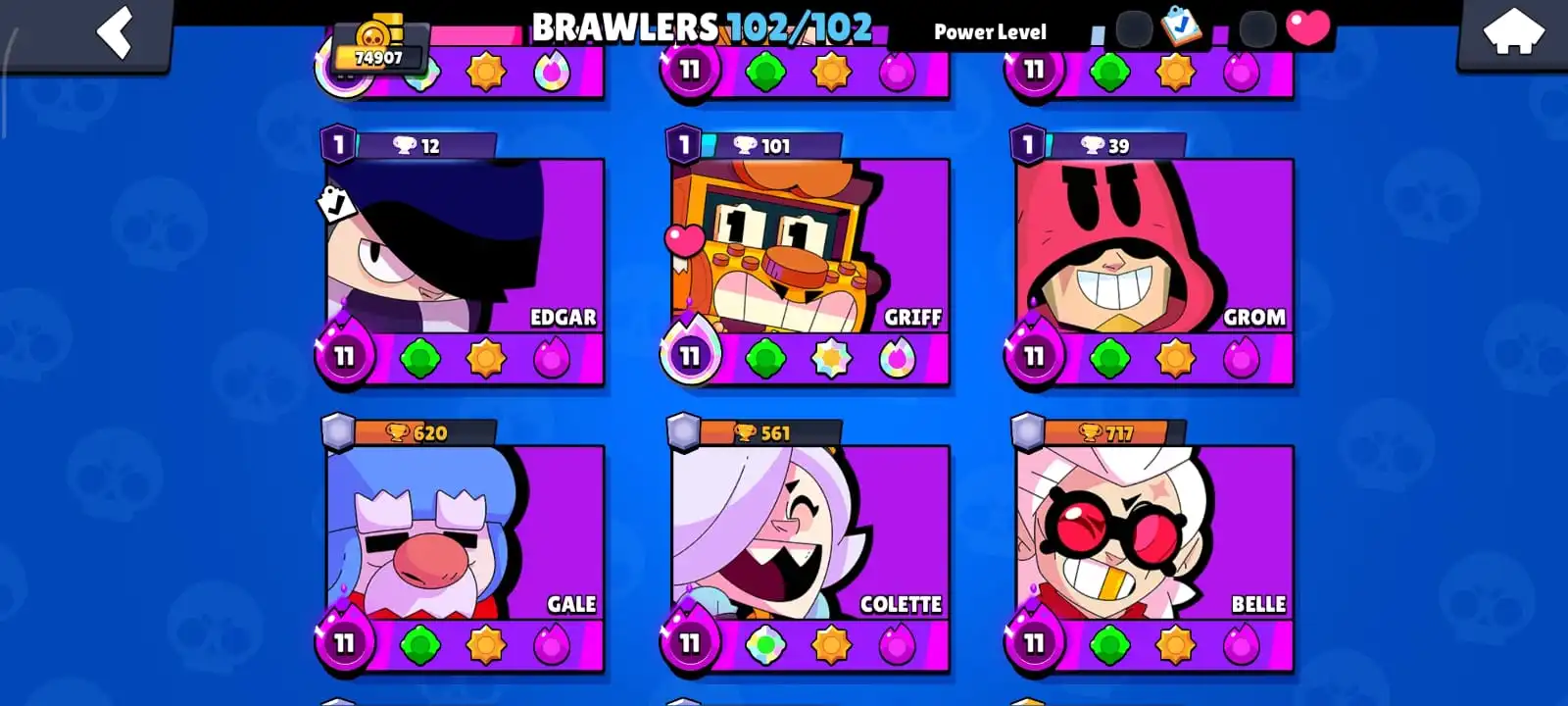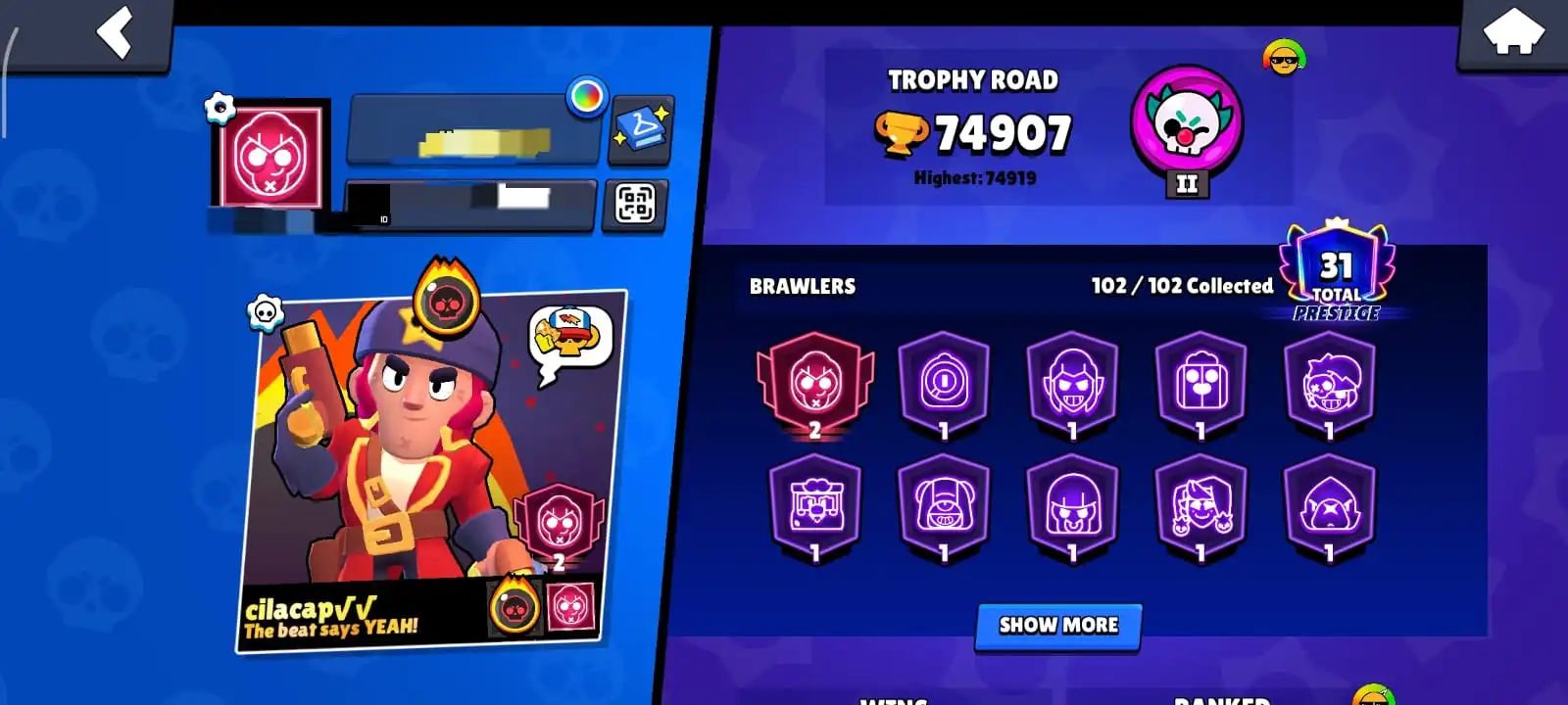 very rare [ full max brawl ]🔥456 skins🔥102 max brawl🔥76 hypercharged🔥trophy 74907🔥full access account🔥