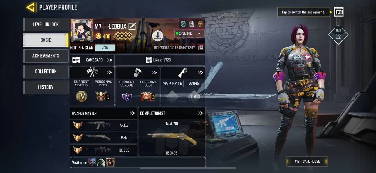 iOS Android 🏆 Level 400 🛍️ Rank Master 🔥 176 Epic 🎯 6 Legendery 🥳 1 Mytich ☠️ 55 Epic Soldier 🧨 Code508