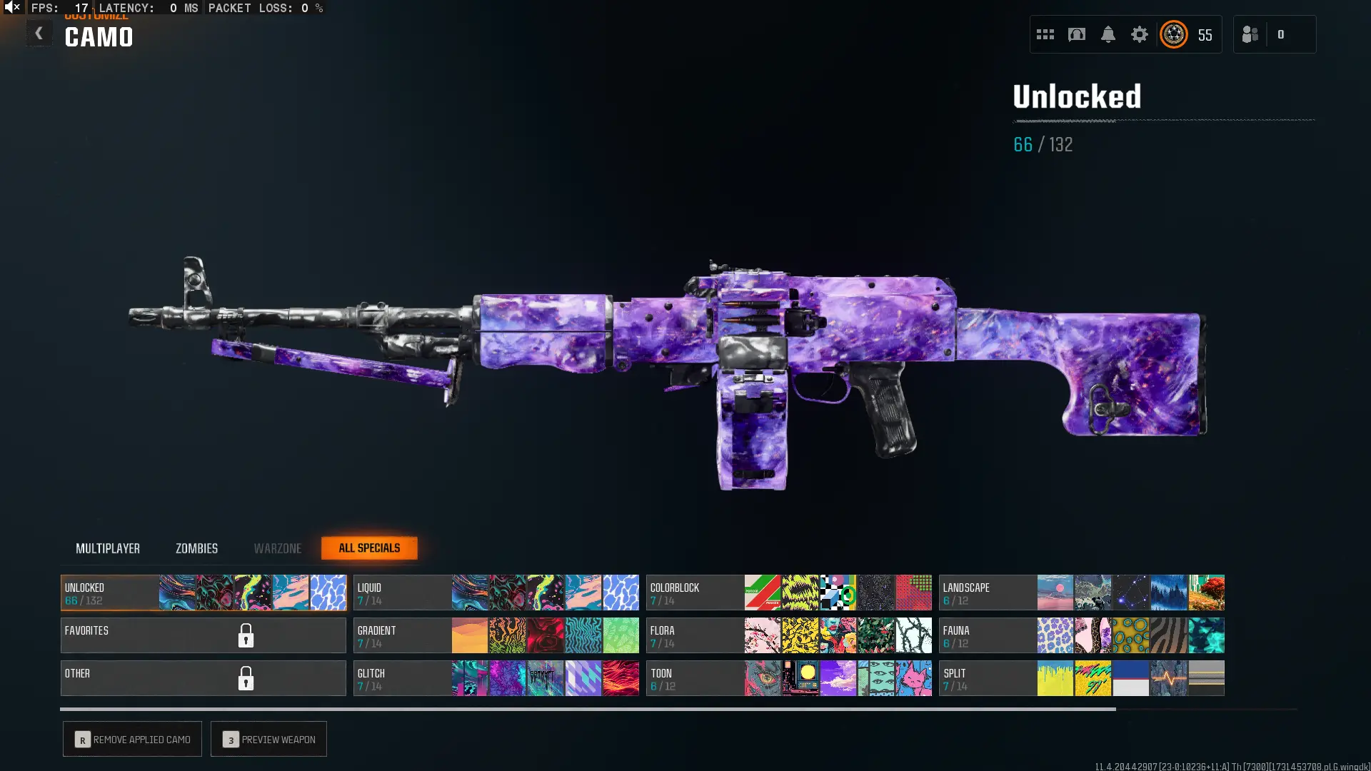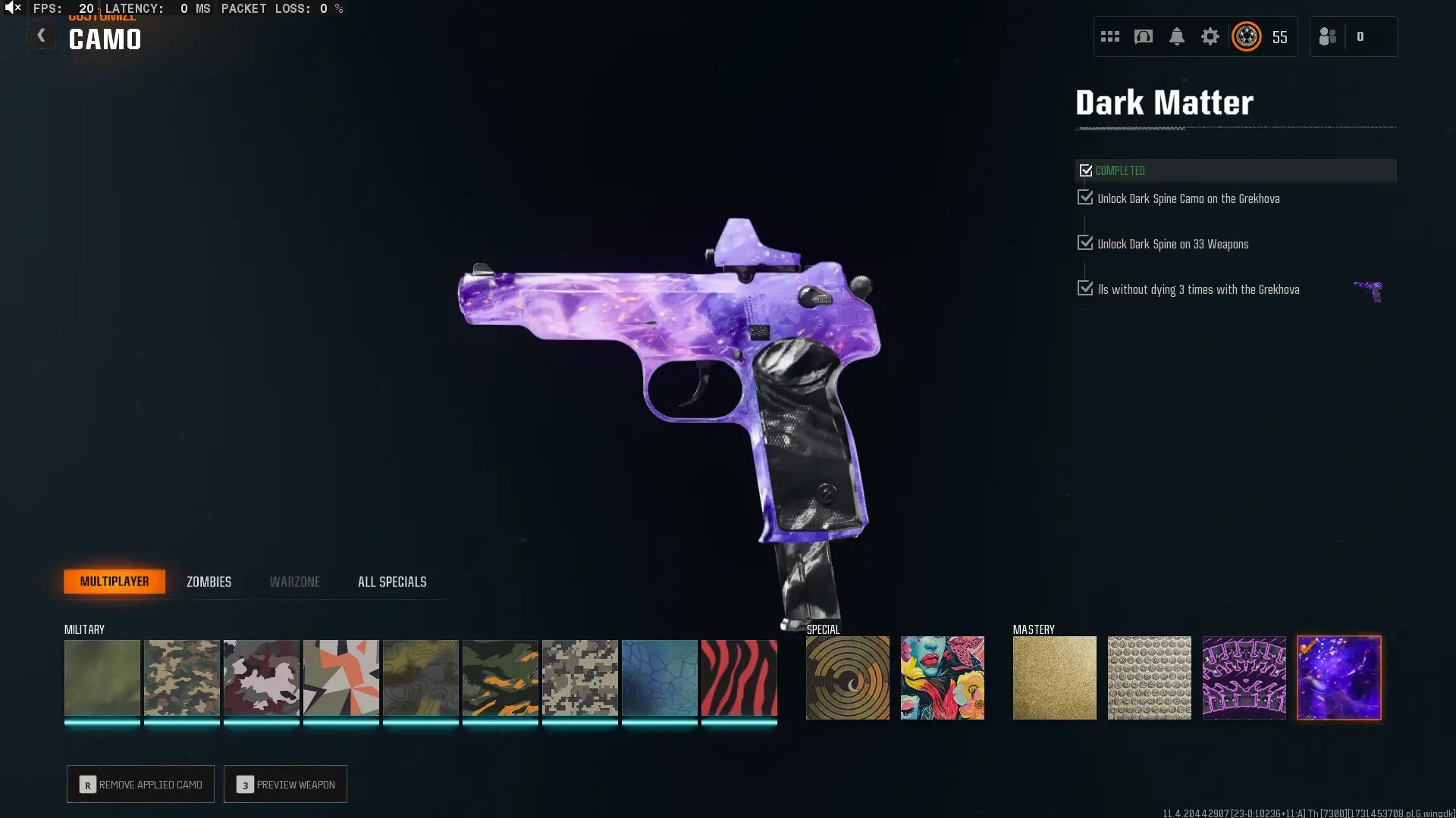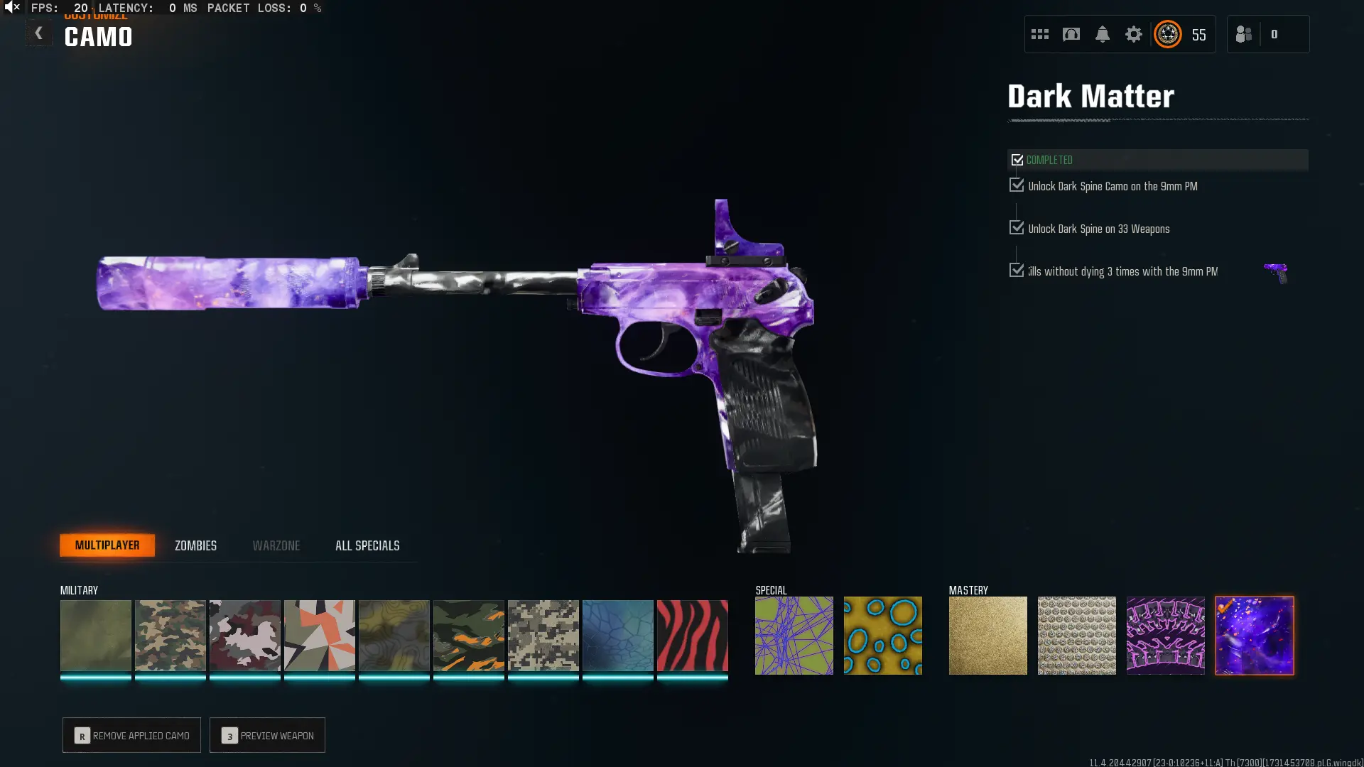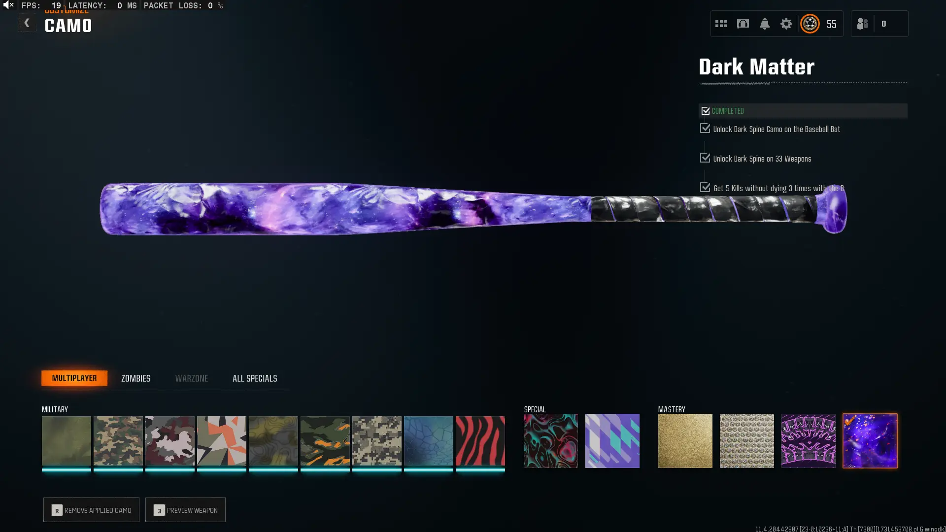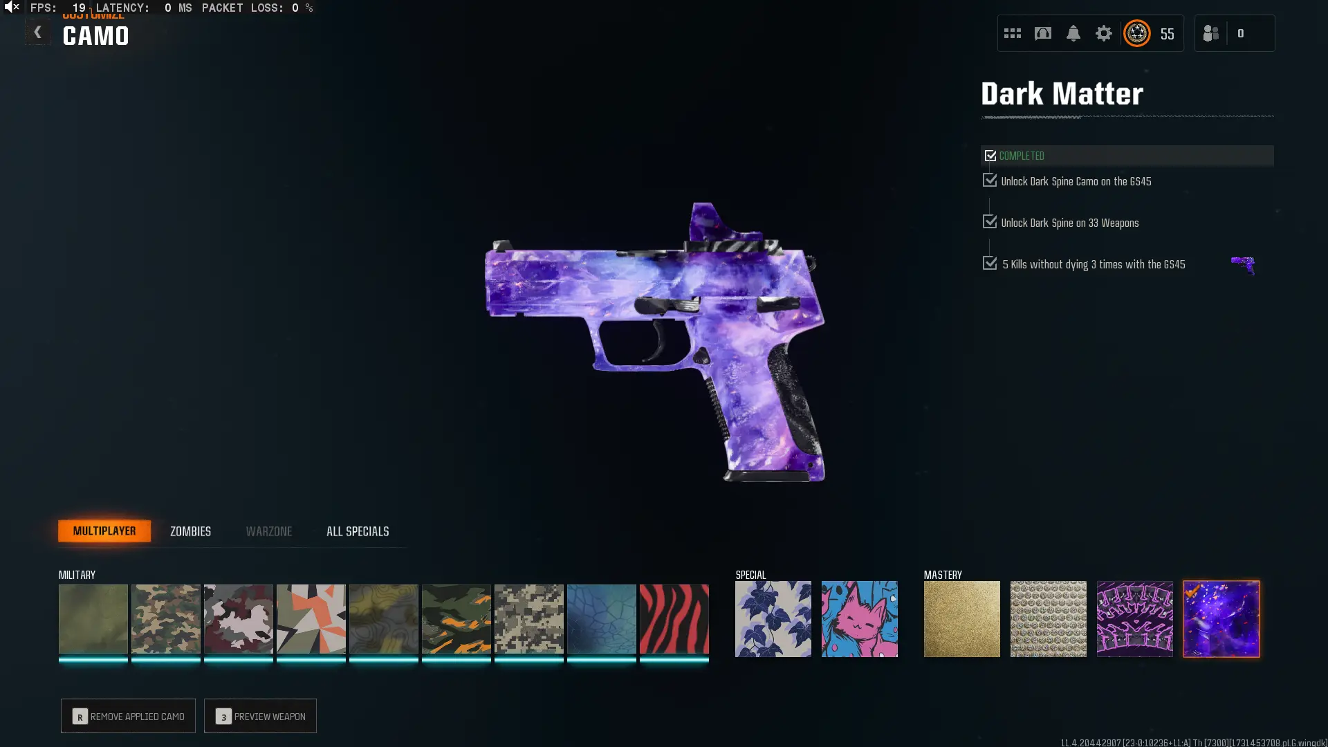 🌌 BO6 & Warzone 🌌 33 Dark Matter 🐉Prestige 4 🌌 459 Camos⚔️ Level 55 🔥 16 Operators 🕸️ Dark Spine 💎 Diamond✨ Gold Camos 🦾 Prestige-Ready🦾 Linkable to: Steam, Battle.net, PSN, Xbox 🌐 Black Ops 6