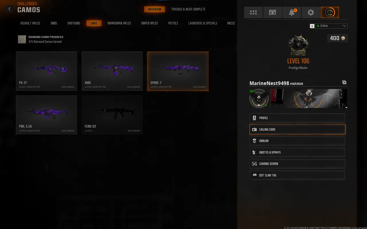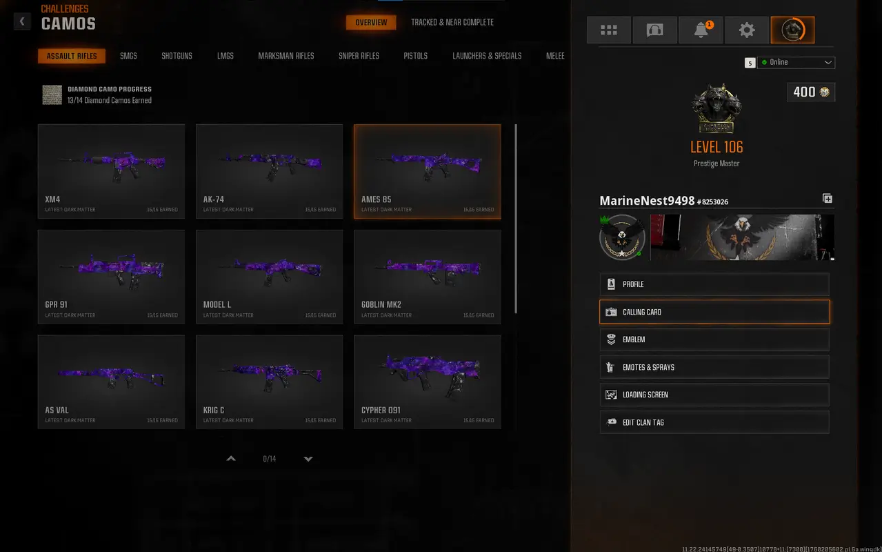 🎮 【BO6&Wz4】 | 🏅 Prestige Master Level 106 | 🎨 33 Dark Matter | 🏆 Very Nuclear Calling Card | 16 Operators | 🔐 Full Access | 🛠️ Handmade | ✅ Dark Matter Legit | 🥇 50 Wins | 🔗 Linkable to (Xbox • PS • PC)