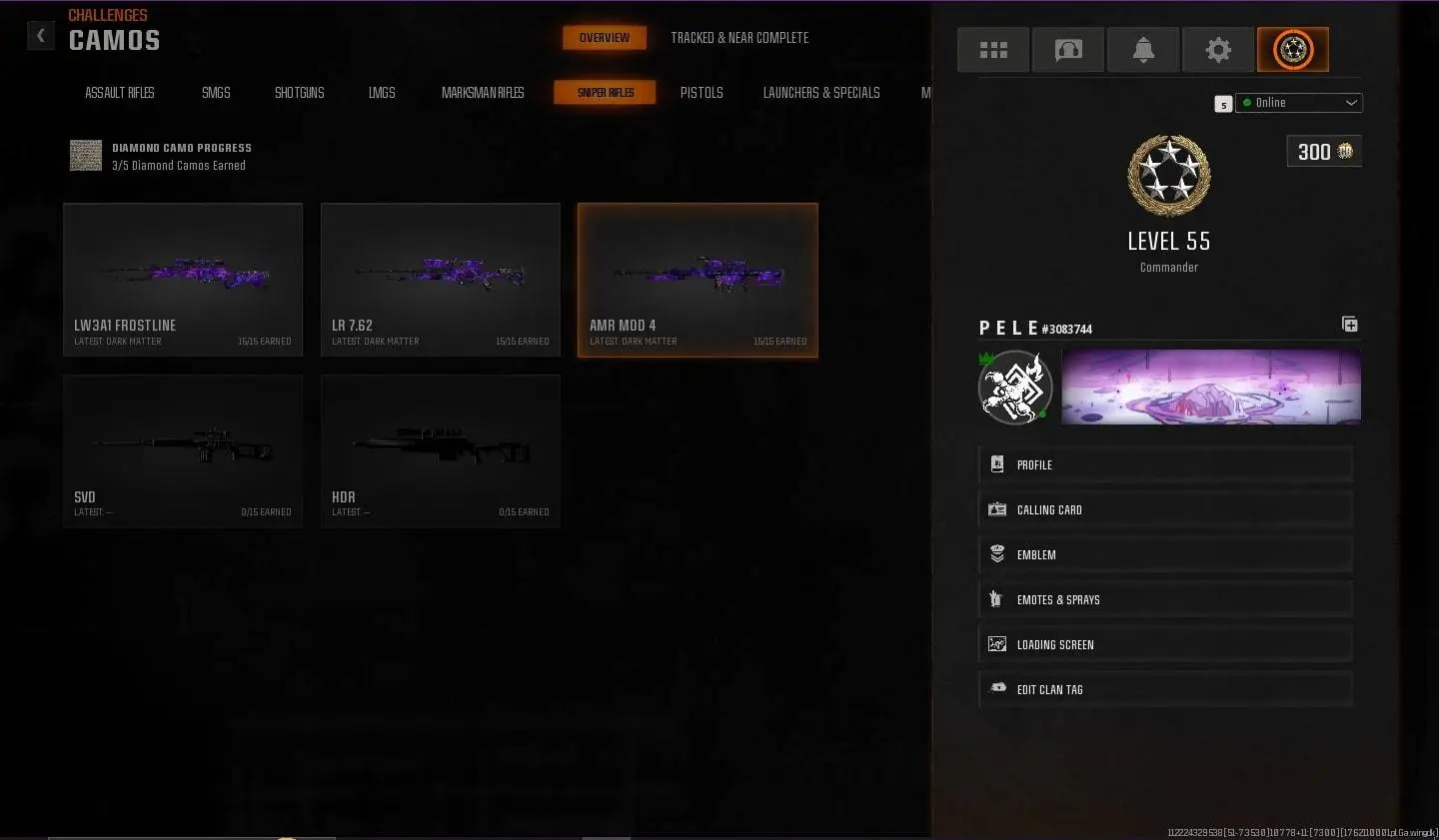 🚔 Personal 🚔 Warzone 4 / BO6 🚔 33x Dark Matter Camo on META GUNS 🚔 33x ( Dark Spine , Diamond , Gold ) 🚔 495 Camos 🚔 Ranked Ready 🚔 Level 55 🚔 50 Wins 🚔 Smurf Account 🚔 Account Steam , Battle Net , PSN , XBOX #GerAo1