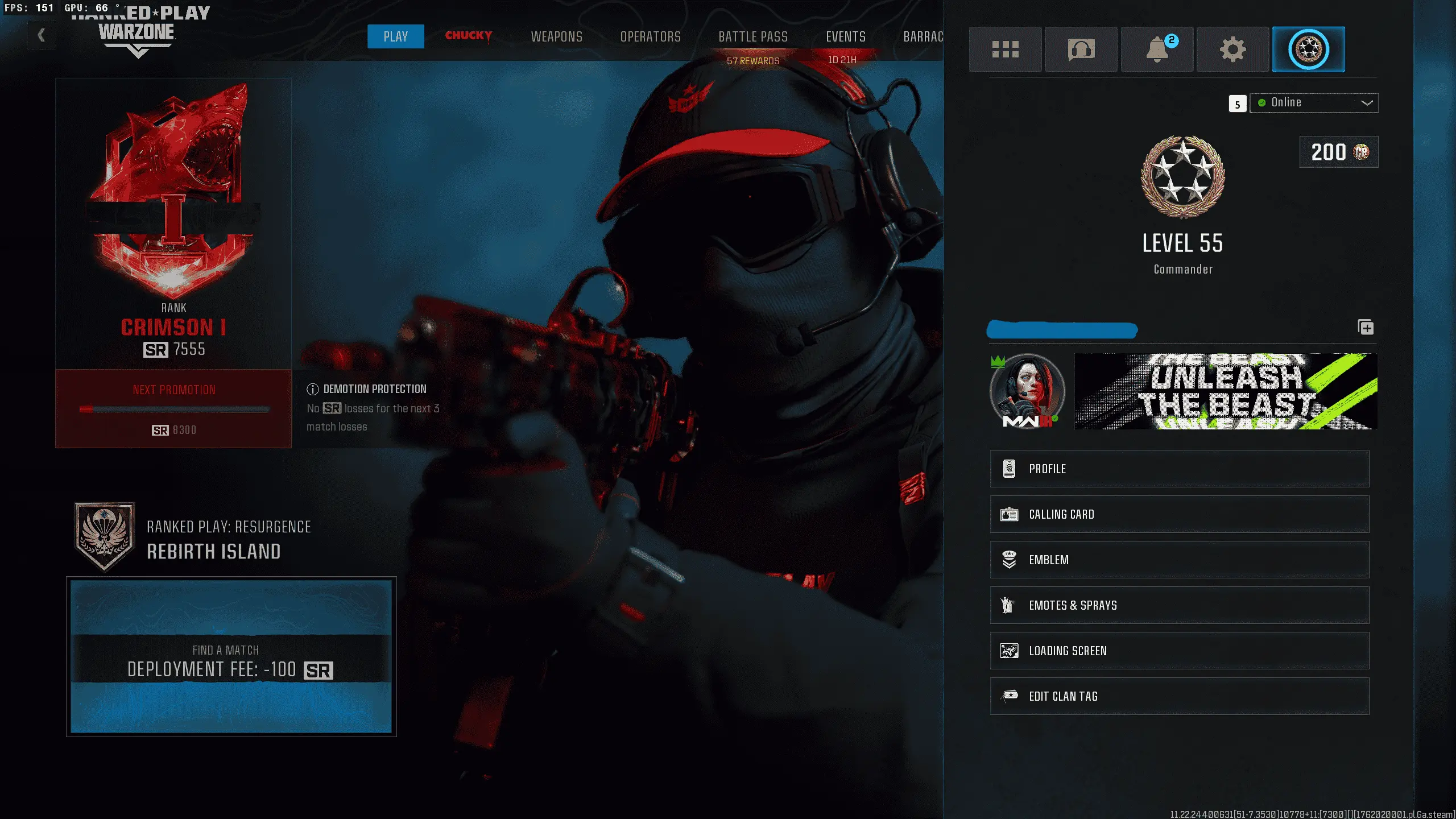 WARZONE RESURGENCE CRIMSON RANK + LEVEL 55 + KILO & DRESDEN 9MM MAX LEVEL