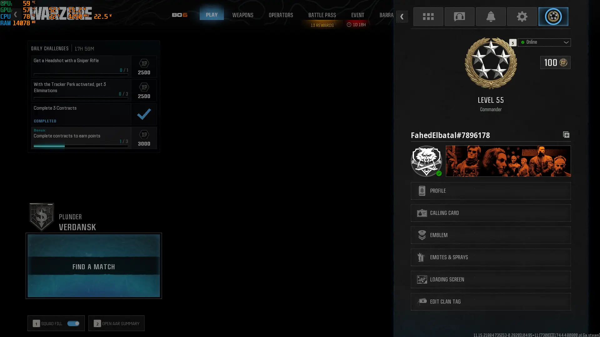 【 🎳 WZ4 🎳 】 Ranked Ready ✔ Level 55 ⚡ 2+ Guns Maxed 🏆 30 Top Placement Games Completed 🎯 17 Operators 🔒 Full Access 🌟 All Info is Changeable 🔗 Linkable to STEAM / BNET / PSN / XBOX #ZBERG324