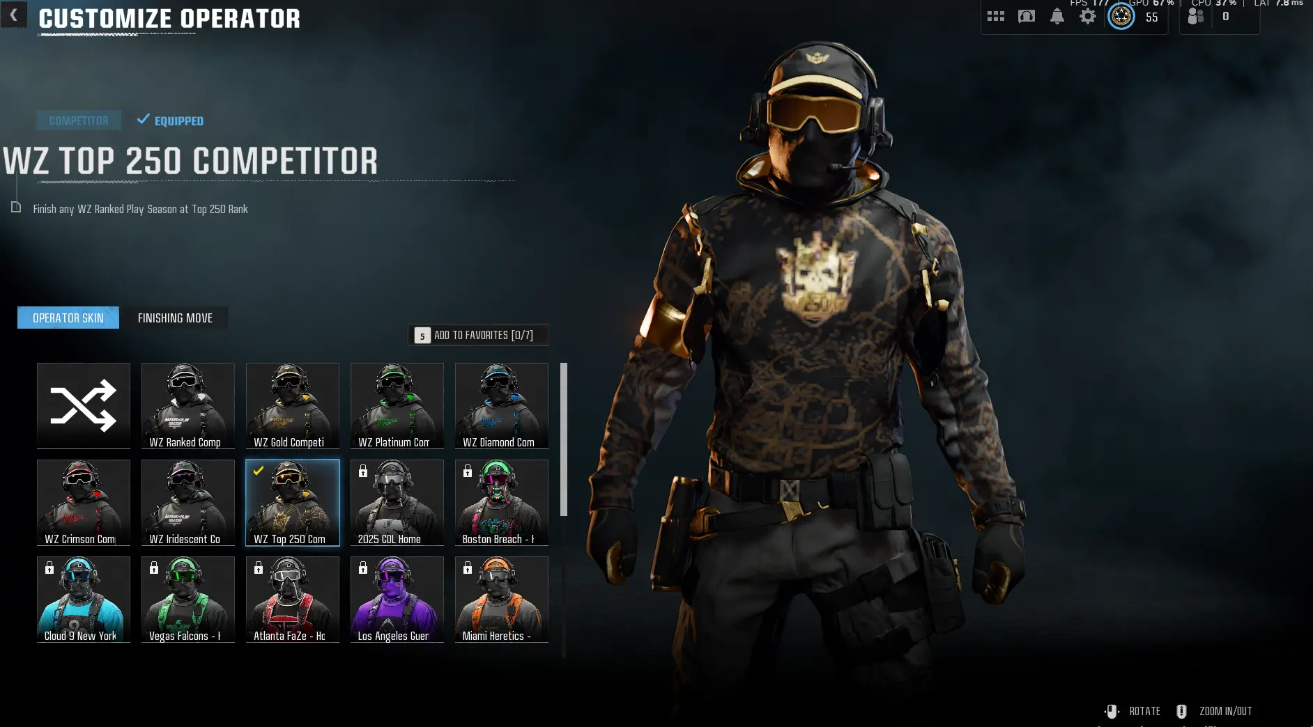 WZ4 Rebirth 🎇 Top 250 SZN 5 🏆 level 55 💎 Iridescent SR 15584 🎯 All Top 250 Rewards Collected ⚔️ Ranked OPS 🔗 Linkable: Steam, Battle.net, PSN, Xbox 🚀 Warzone 4 Iridescent #N9J4VX