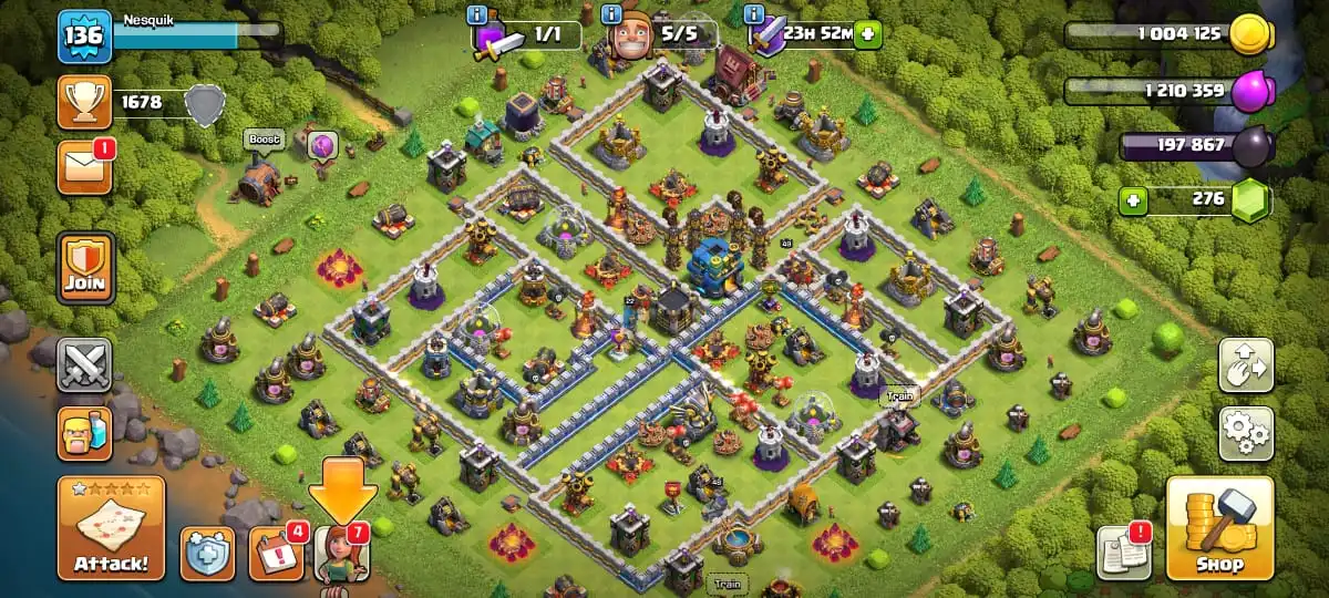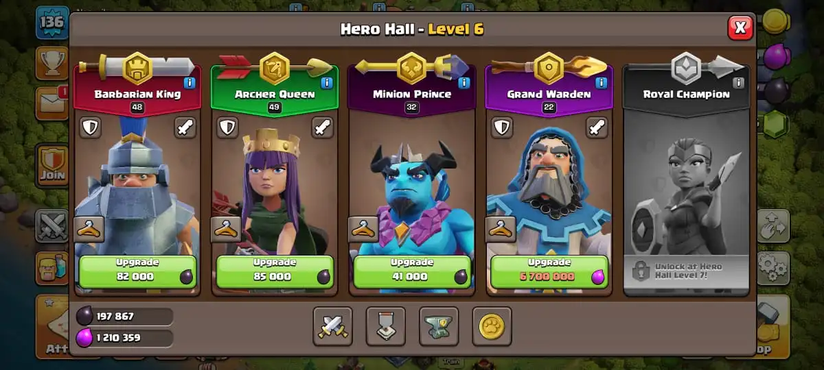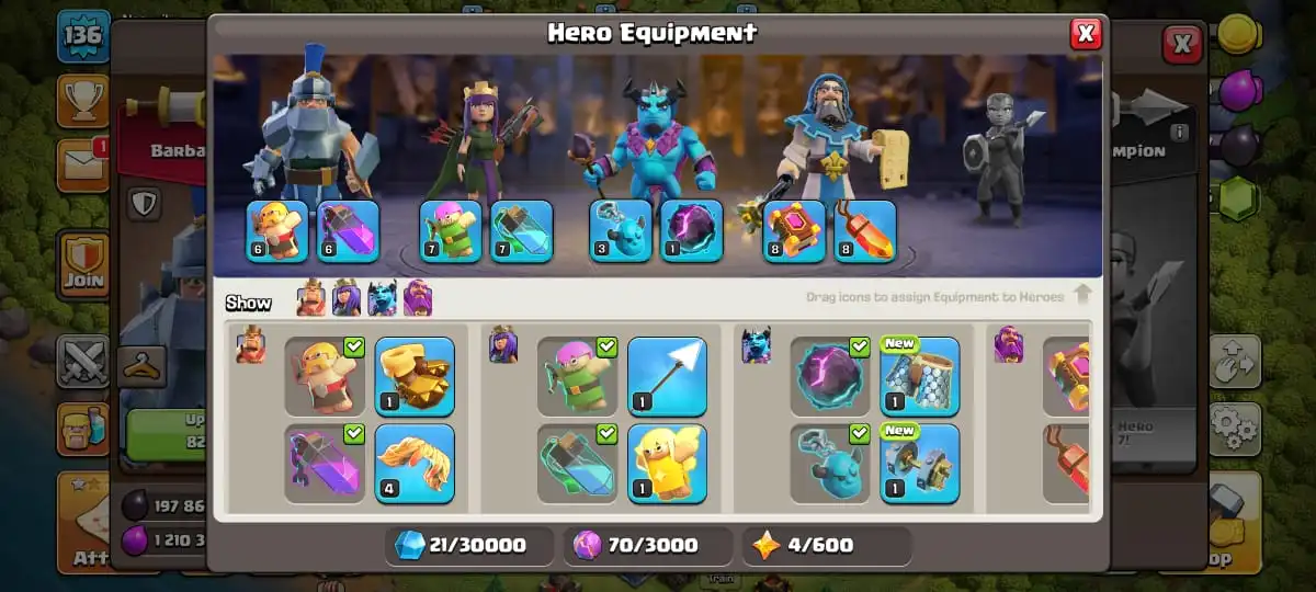 1480🎮TH12🎮Lvl 136🎮BK 48 AQ 49 MP 32 WD 22🎮GEMS 276🎮4 SKIN HEROES