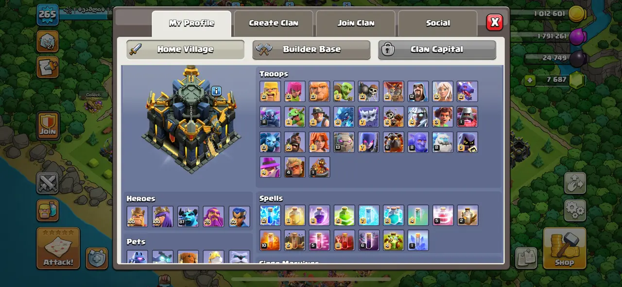 🏅1.5k MEDALS 🔥 TH 17 FULL MAX 🔥 XP 265 [100-100-87-75-50] 🔥 12/13 EPIC EQUIPMENTS (1 MAX) 🔥 4 HEROES MAX 🔥 WALL ALMOST MAX 🔥 MAX DEFENSES 🔥 FULL ACCES & GUARANTEED 🔥[F2683]