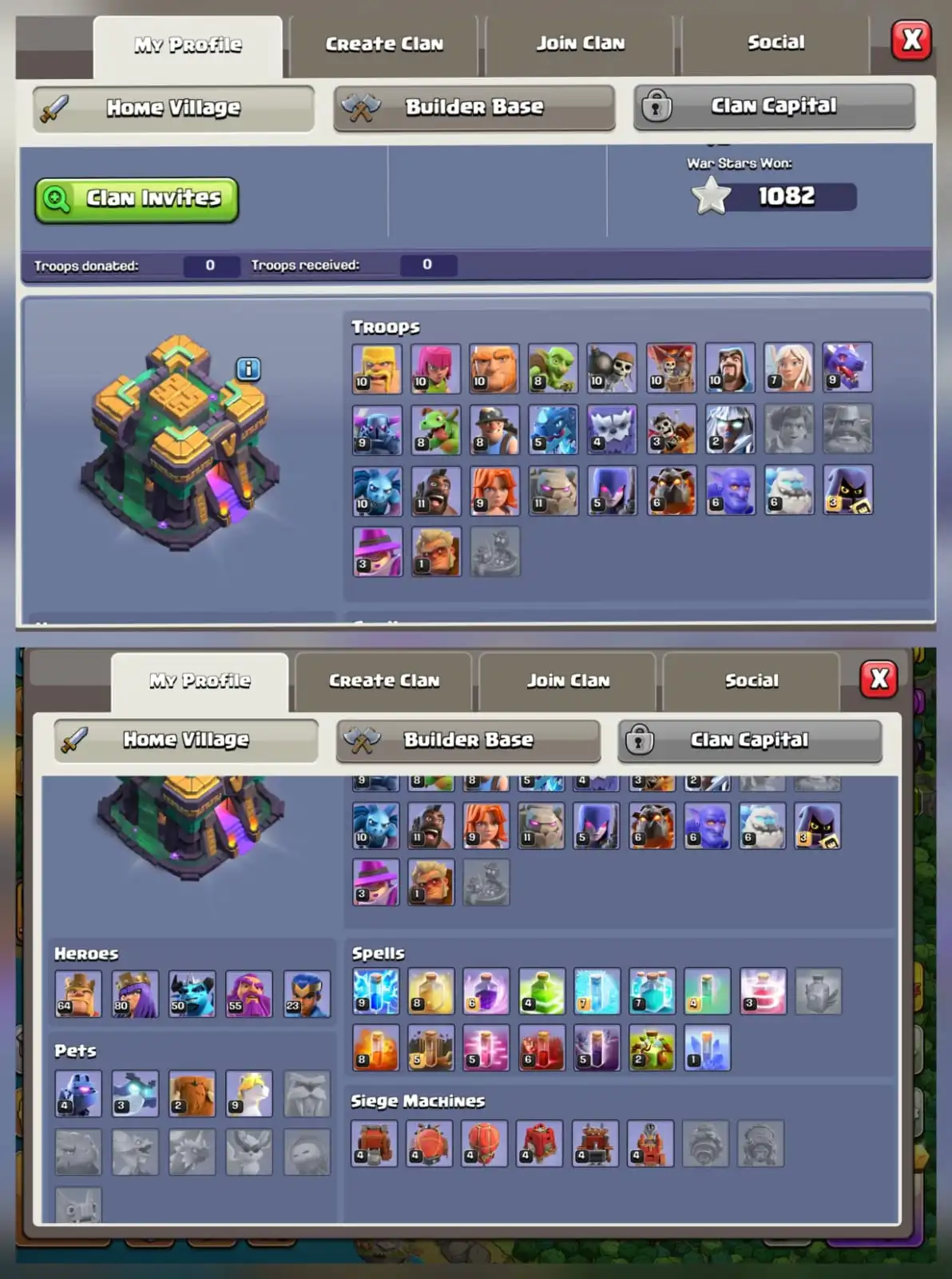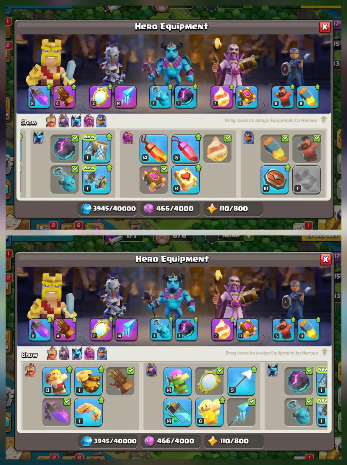 🏆 [800+ GEMS SPOT] TH14🎖️ XP 210 ⚙️ 4 EPIC EQUIPMENTS🛡️ MAX DEFANCE & ARMY🏰 GOOD BASE💎 2 HERO'S SKIINS 💍 NAME CHANGEABLE 🦸♂️ HEROES:- BK64 AQ80 MP50 GW55 RC23