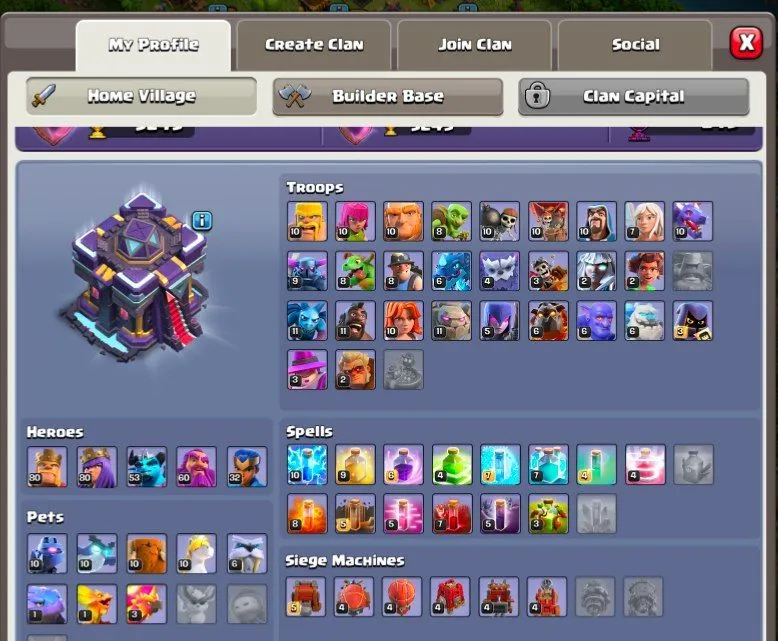 9 Epic Equipments 💥 , Th15 Semi Max 🌼 , Heroes 80-80-53-60-32 🔥 , 5 Max Equipments 💪 , 2076 💎 , 142 Cwl Medals 🥇🏆 , 6 Hero skins 🌼 , Magic items ✨ | Both Android and iOS | Instant Delivery 🚚