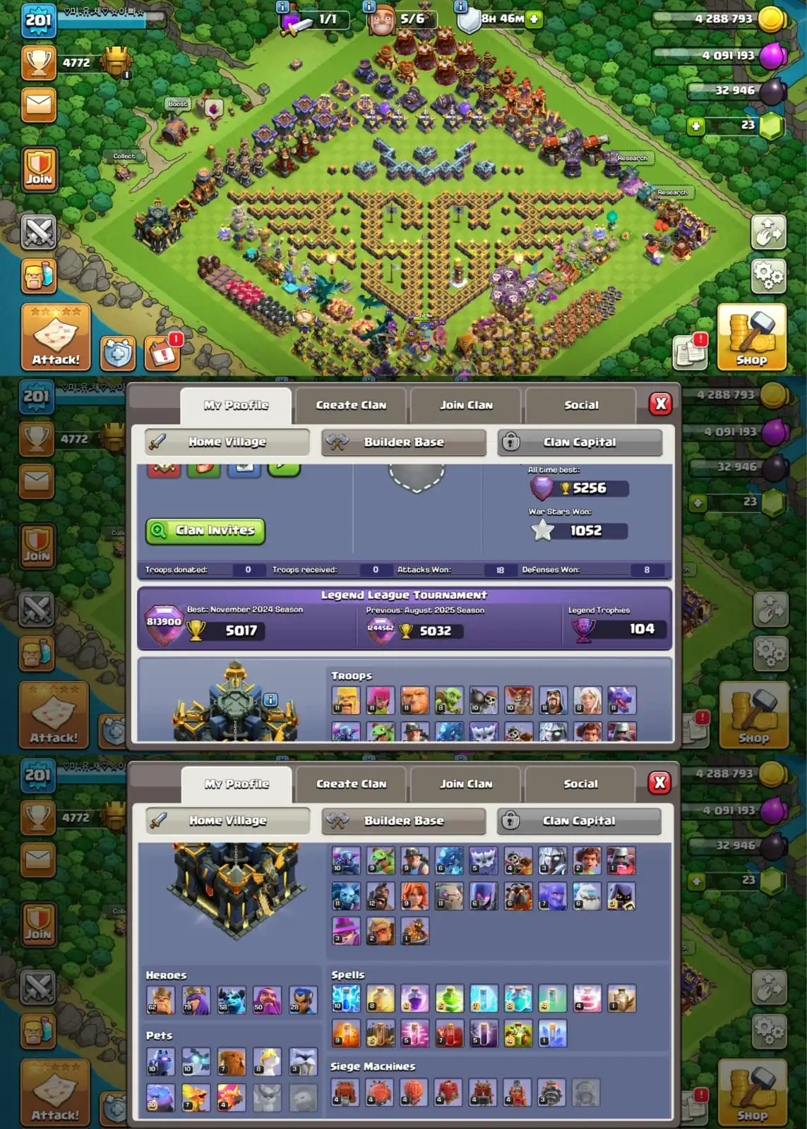 ✨ All 12 Epic Equipments ✨ 8 Epic Level 20++ ✨ Th17 Max Donation ✨ Heroes:65-80-60-50-30 ✨ Max Type Pets ✨ CWL-364 ✨ NC 500 ✨ RM-1365 ✨ 8X Skins ✨ Full Access ✨