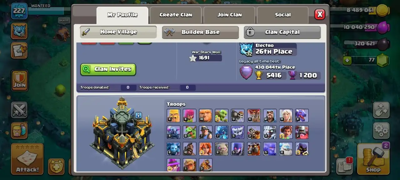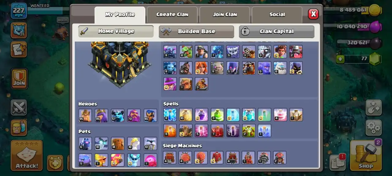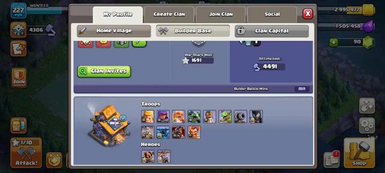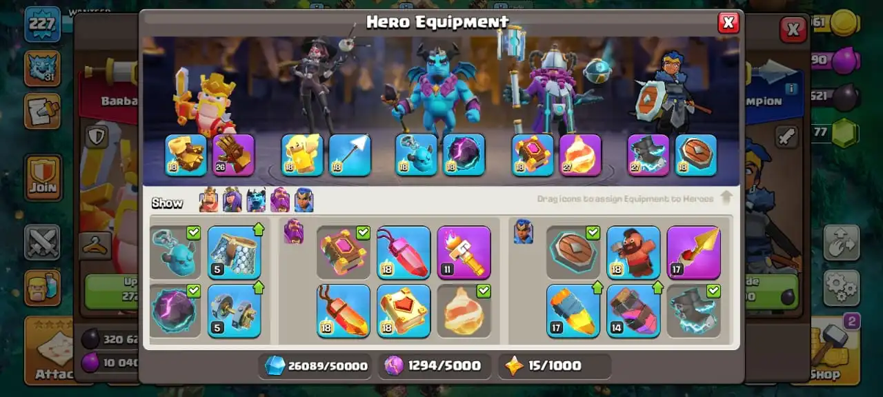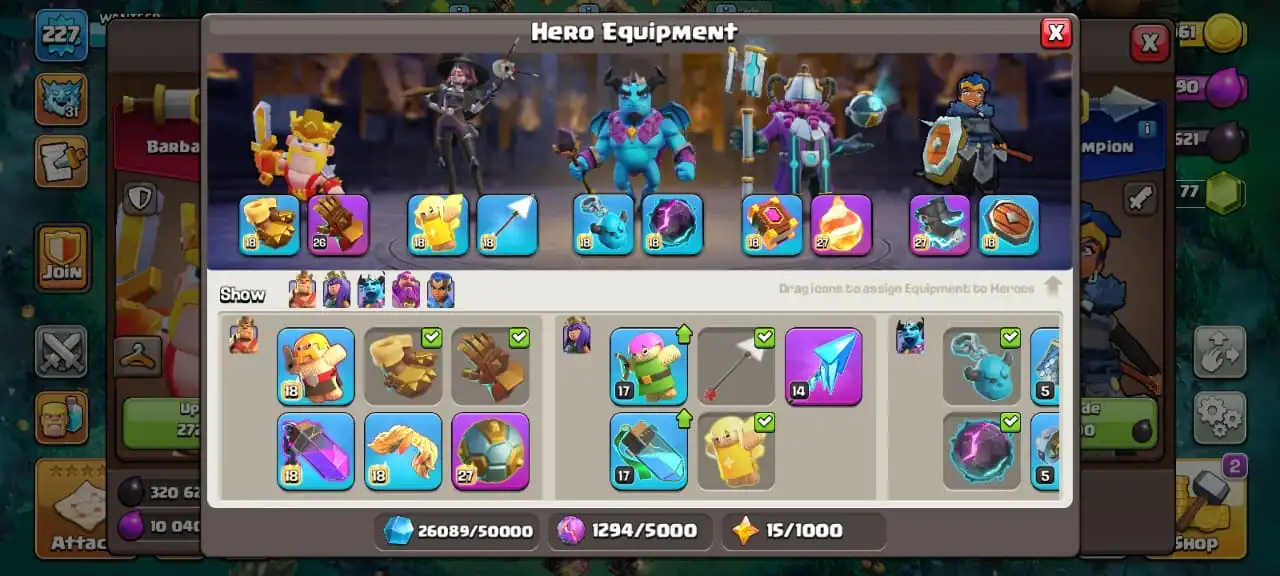 Big sale☠️3 max epic equipment🔥TH 17 ex th 16 max🔥high heroes level 95/95/57/70/45⚒️6 builder’s✅2 scenery and 7 heroes skin
