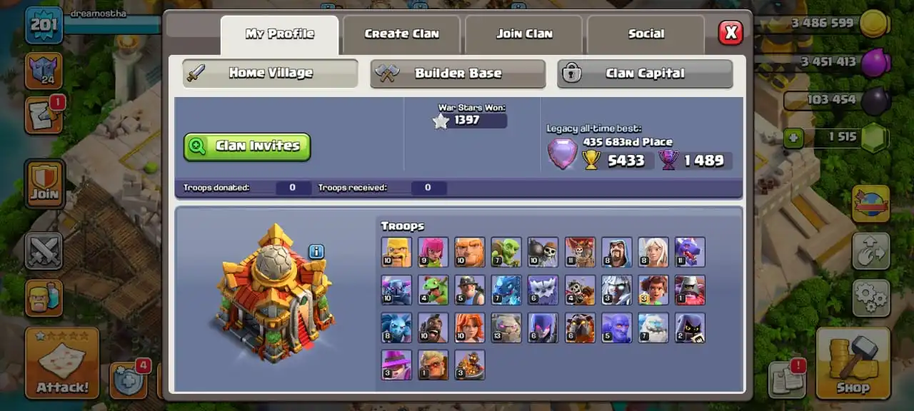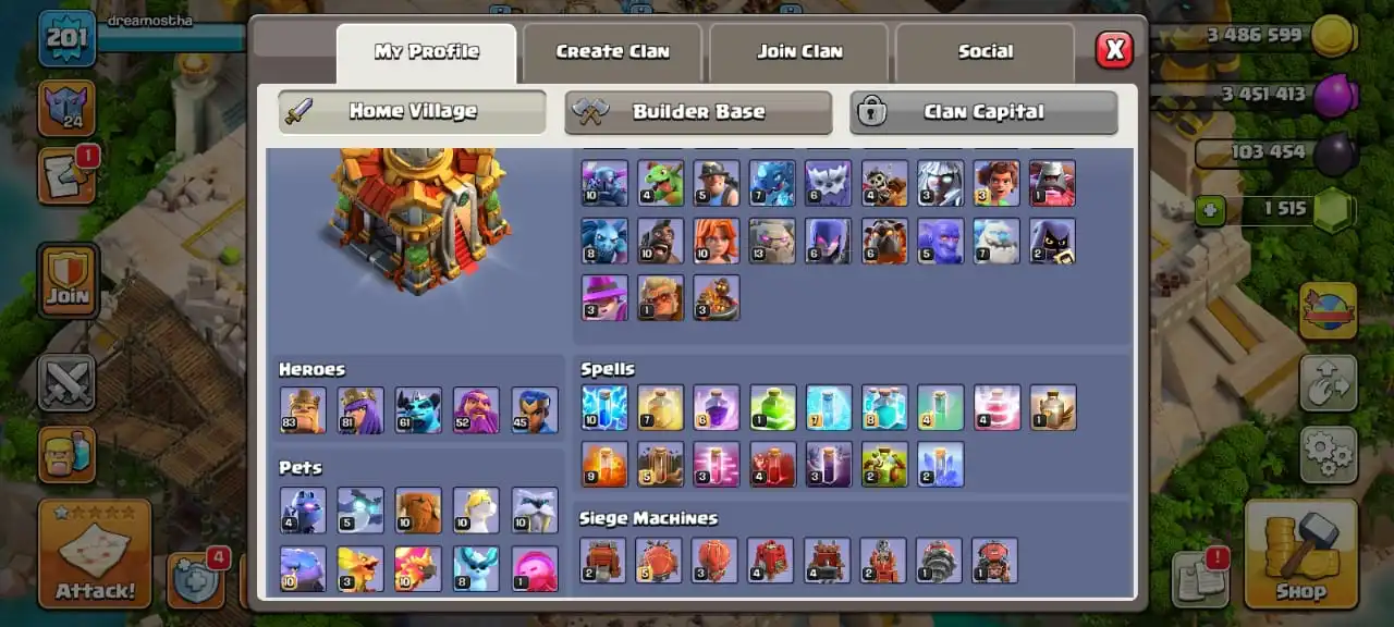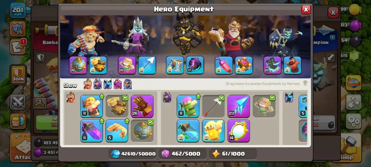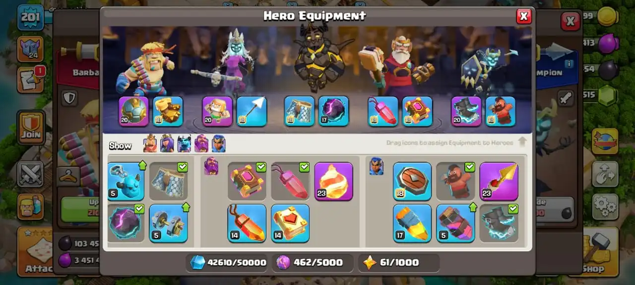 Big sale🔥TH 16 max defense🔥high heroes level 83/81/61/52/45☠️8 epic equipment⚒️6 builder’s⭐️1500 cwl medal✅free name change