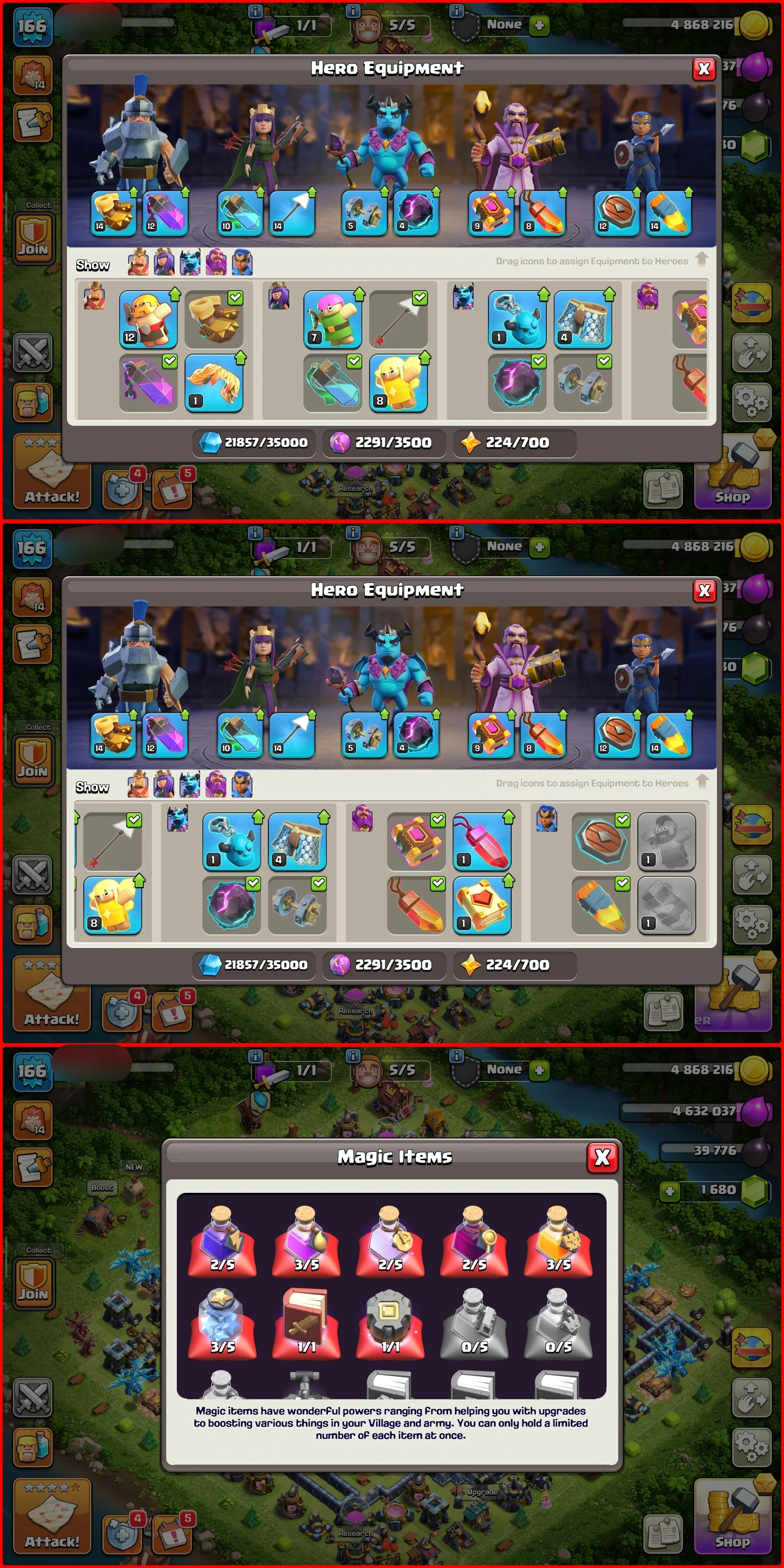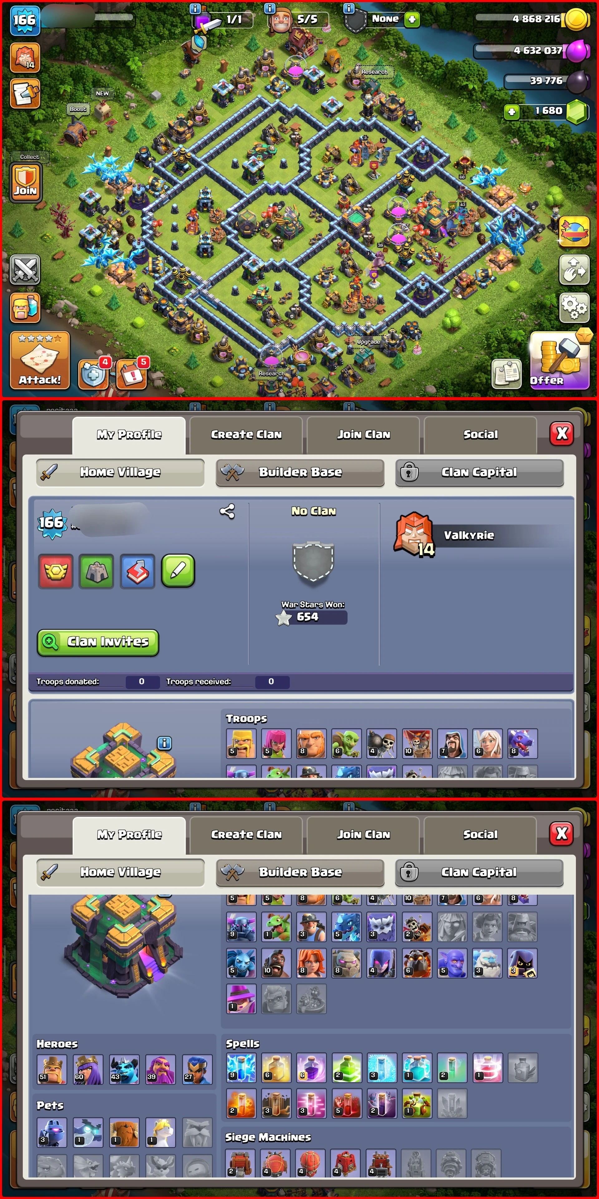 Gems | Hefty BH9 + 1.5K NC | POWERMAX TH14 ACCOUNT | Heavy Defenses & Troops | 51/60/43/39/27 | Lofty Equipments & 1.6K+RB402