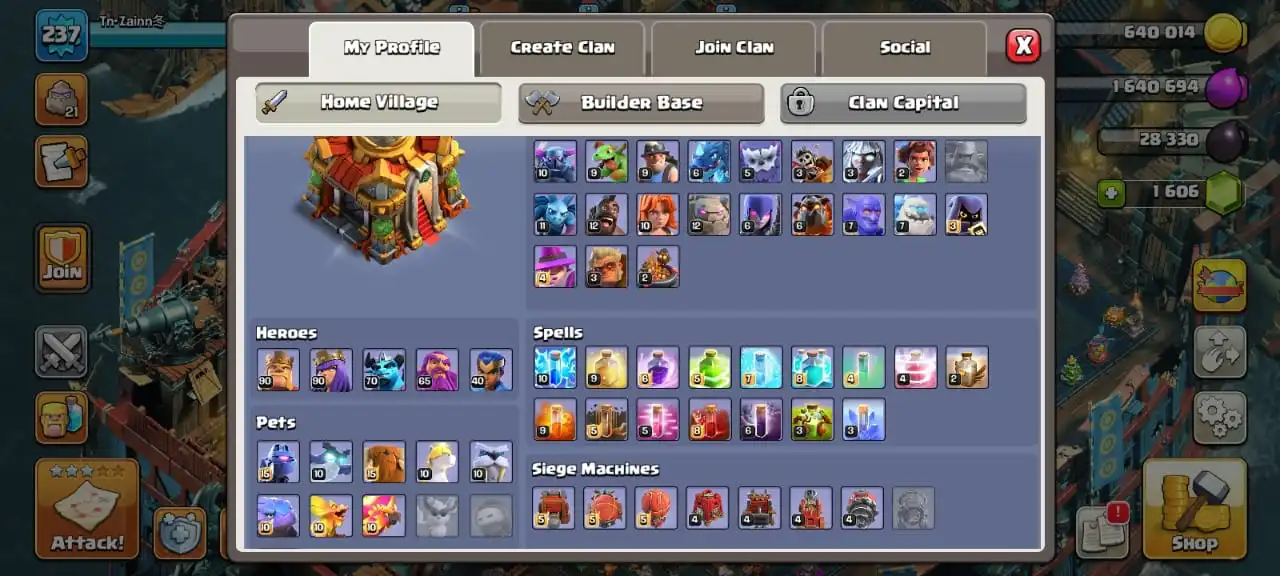 High seas and war arena scenery✅TH 16 ex th 15 max🔥high heroes level 90/90/70/65/40🔥high level pets⚒️6 builder’s☠️full equipment 32/33✅12 heroes skin