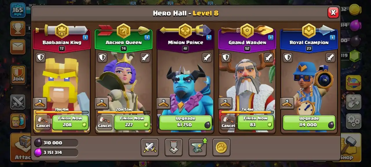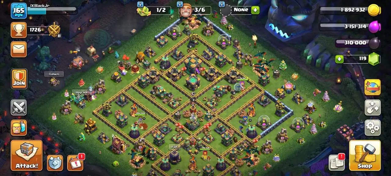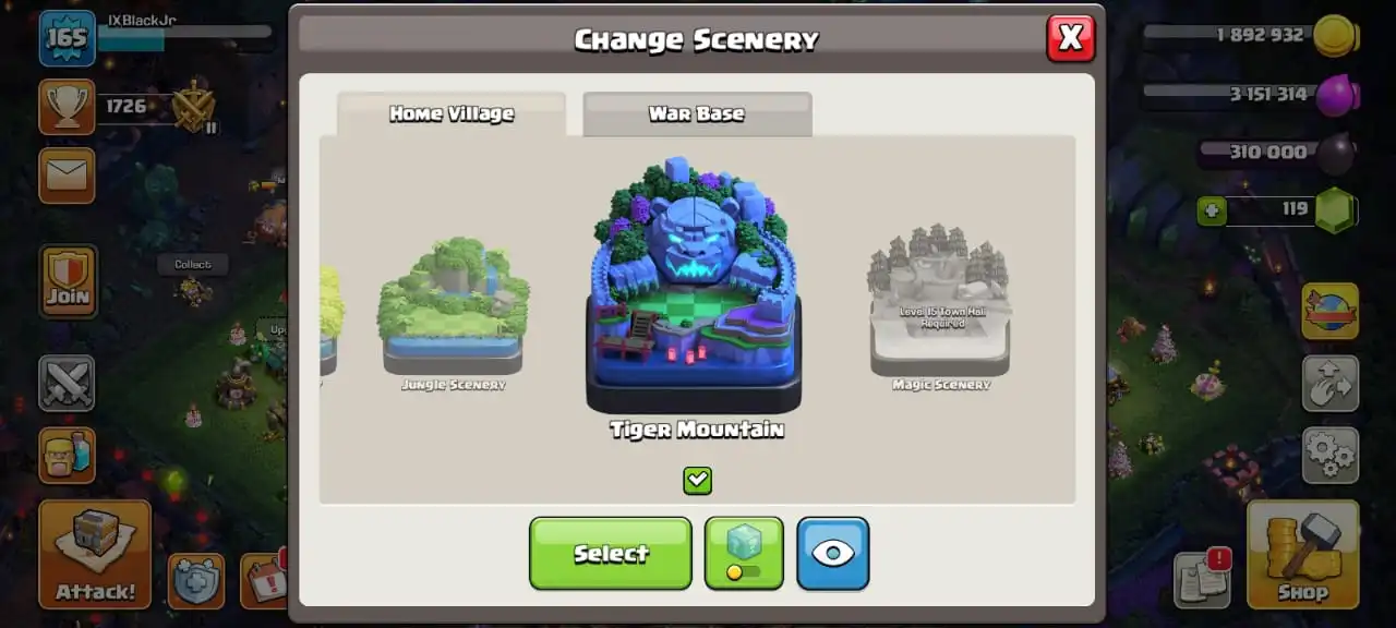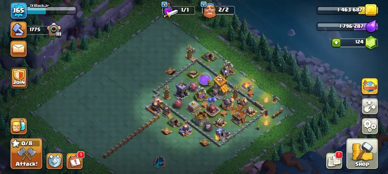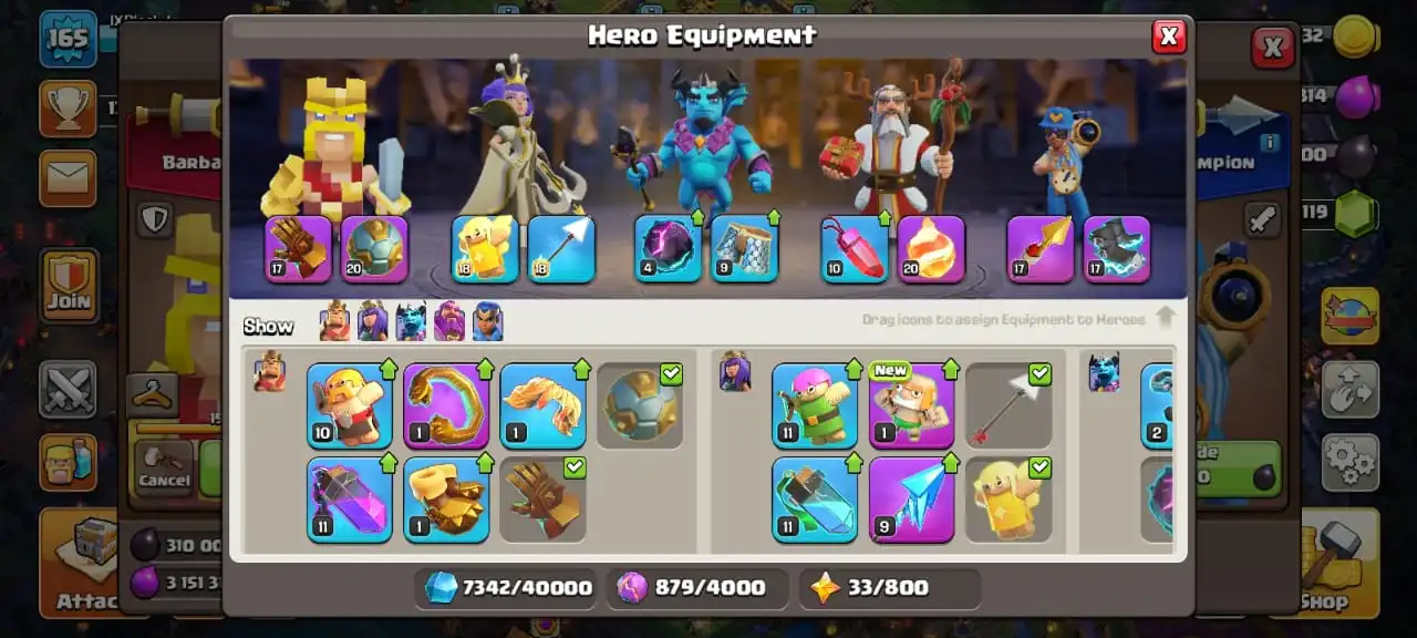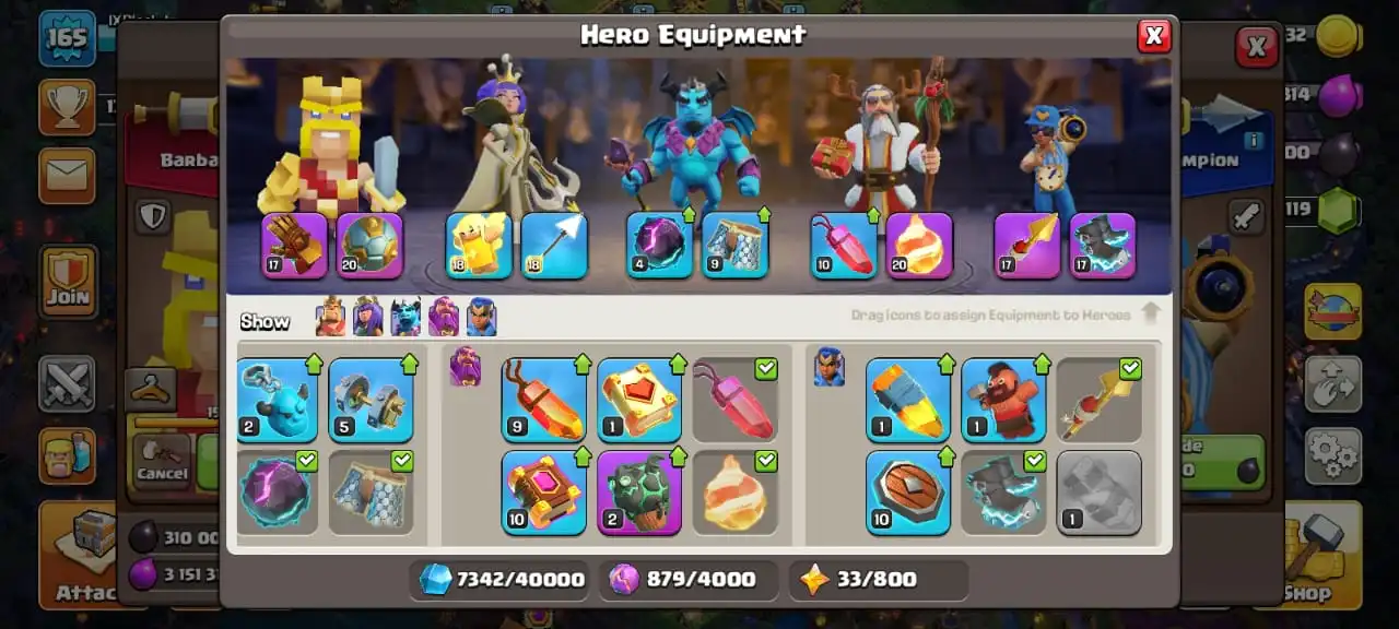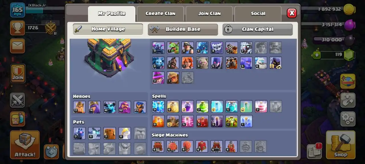 Sale🔥TH 14 max defense🔥high heroes level 72/74/41/52/23☠️9 epic equipment⚒️6 builder’s✅tiger mountain scenery and 5 heroes skin