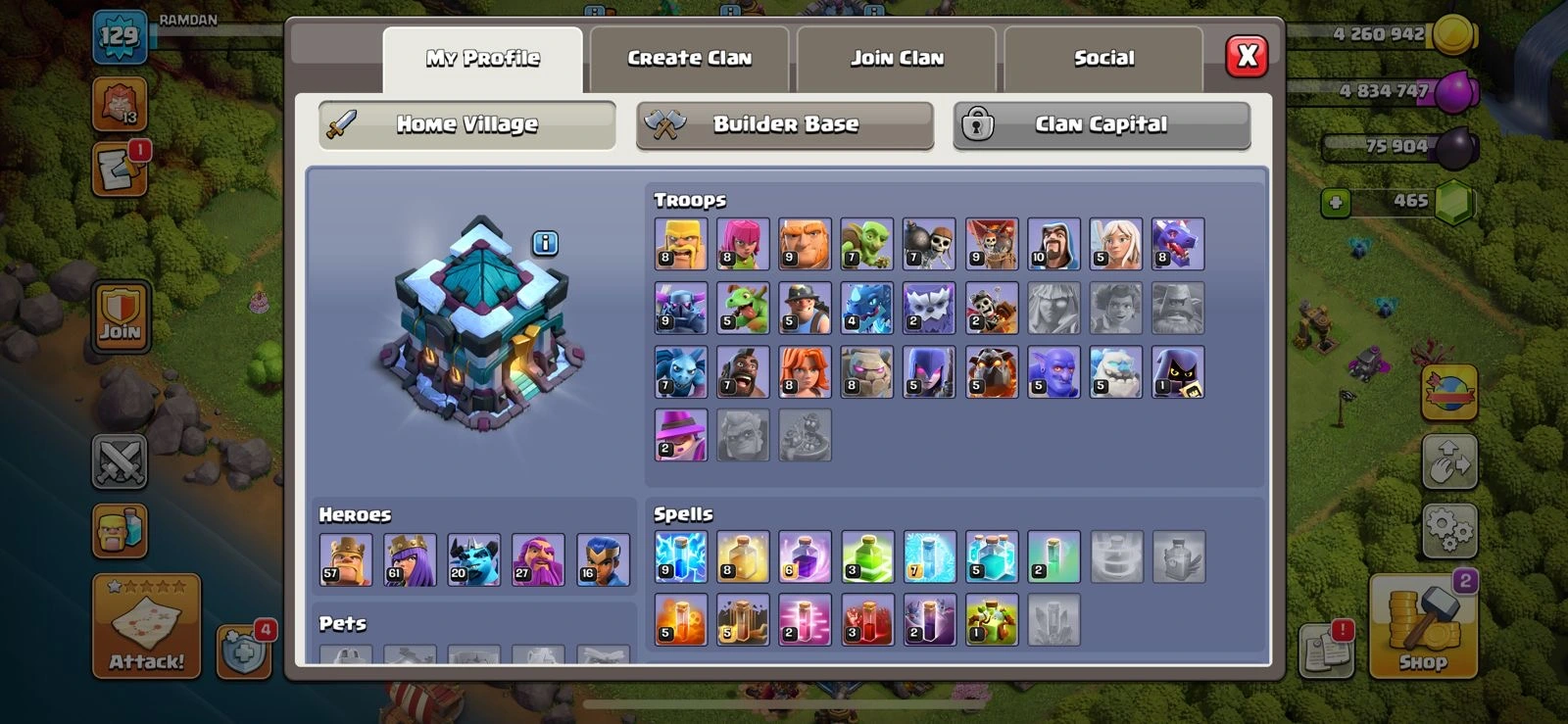 TH 13🔥XP129🔥HEROES 57-61-20-27-16🔥FREE CHANGE NAME🔥#24