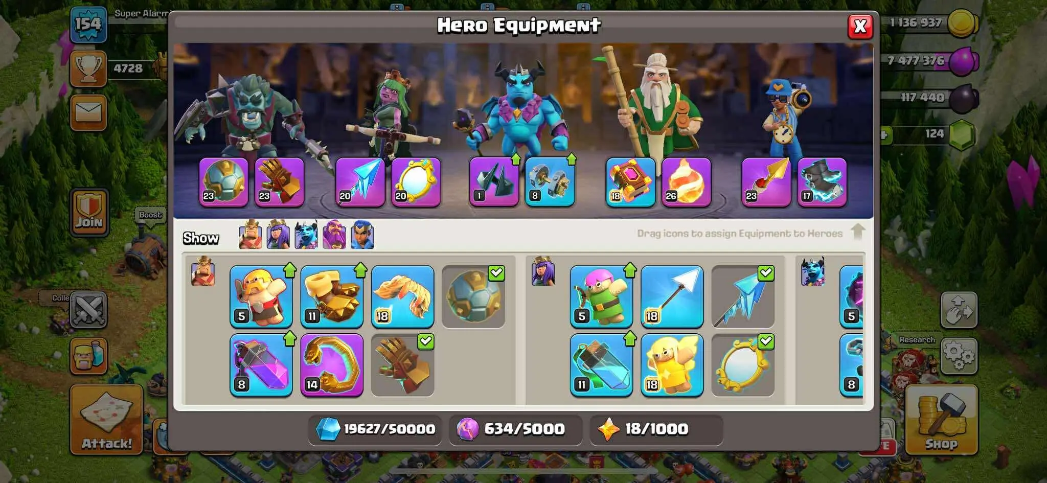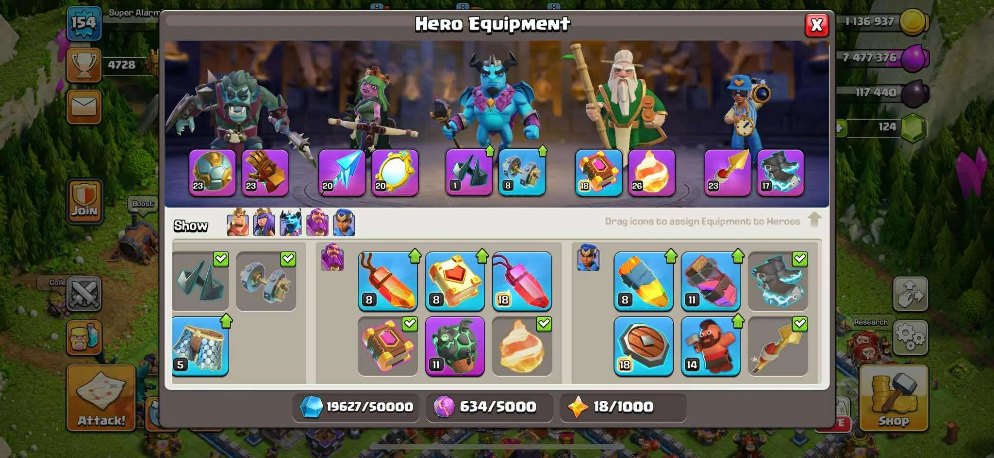 TH 17 BEST DONOR🔥RARE WAR ARENA SCENERY ❤️SUPER HIGH EPIC EQUIPMENT⭐️HERO 46-38-42-23-12✨GOOD SKINS