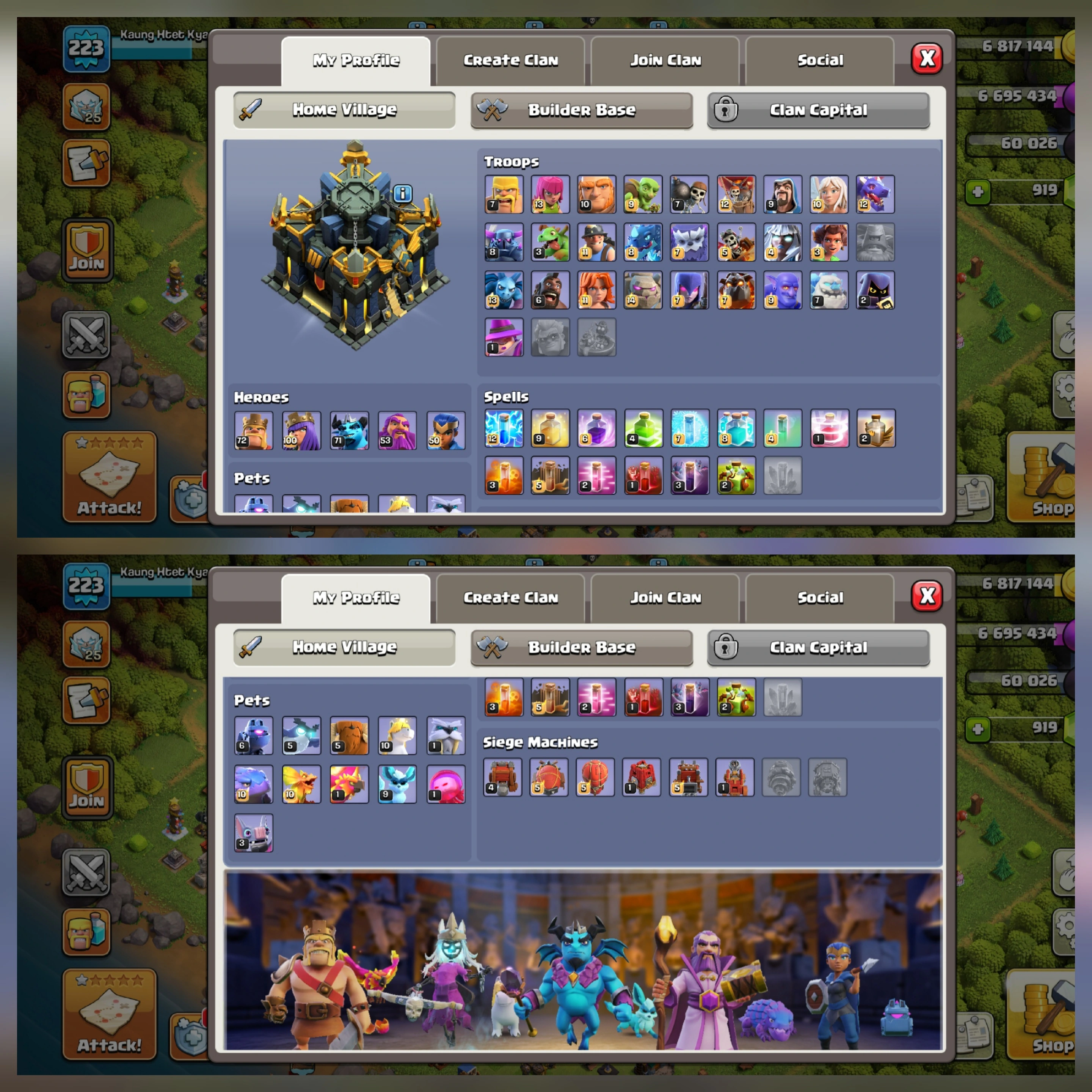 Th 17 full max wall defense 100% max 7 epic equipment 💥💥💥 nc 1000 gems 💥 Heros 100/50 queens & royal champions ■■ max account 223 xp