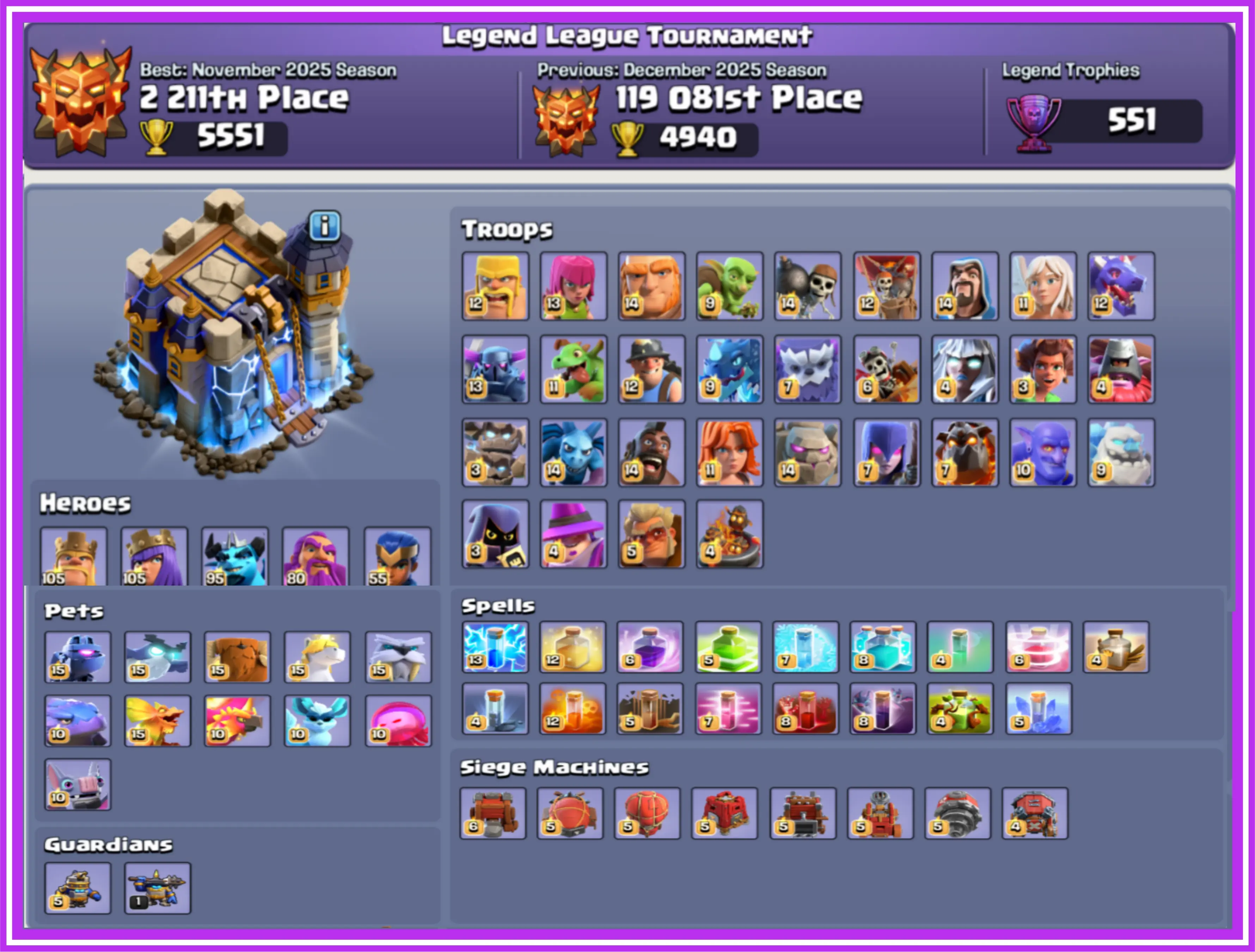 🥂 TH 18 MAXED 🔥 SUPER PRIMIUM ACCOUNT ⏩ LAB 100% MAXED 🤝 98% BASE MAX 💸 5 HERO MAXED 🥂 9 EPICS FULL MAX 🔥 1 LVL 26 👀 MANY HERO SKINS 🔥 9X PAID SCENERY 🔥. CHEAPEST IN MARKET 🔥