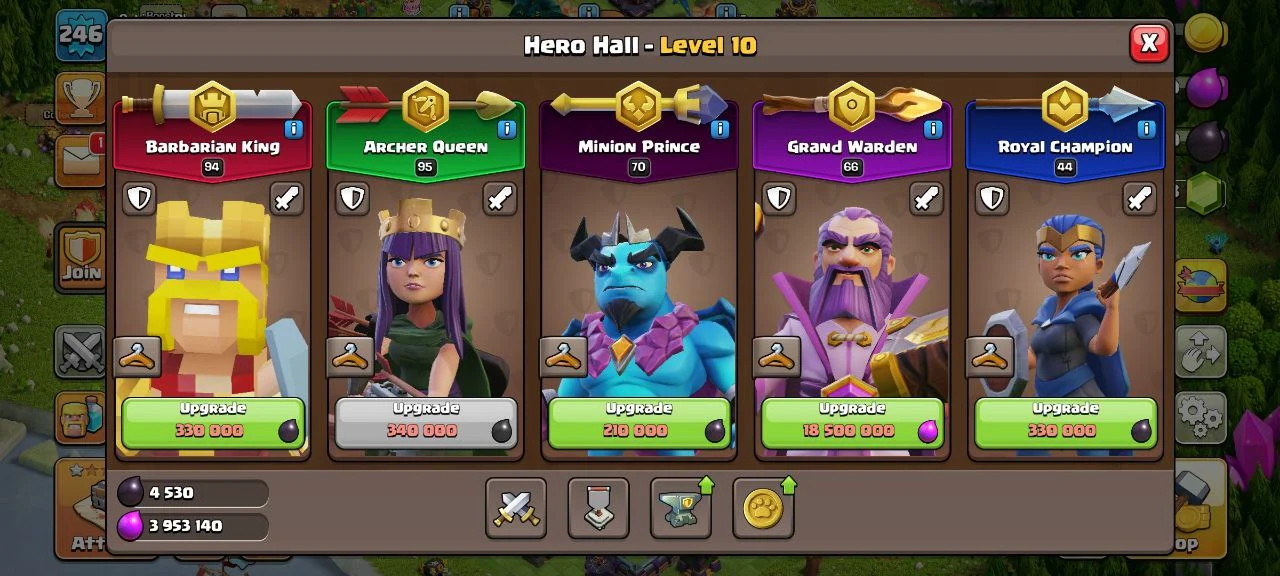 🔥 TH16 CANADA ACCOUNT 💠 XP 246 💥 | MAXED & POWERFUL ⚔️ | HEROES B.K94-AQ95-MP70-GW66-RC44 💪 | 4 OP SKINS 🎭 PRIMAL QUEEN, PIXEL KING, SQUAD BUSTER KING, GLADIATOR KING | 13 MAX EQUIPMENTS ⚙️ | JUNGLE, MAGIC SCENERY 🌴 | INSTANT DELIVERY 🚚