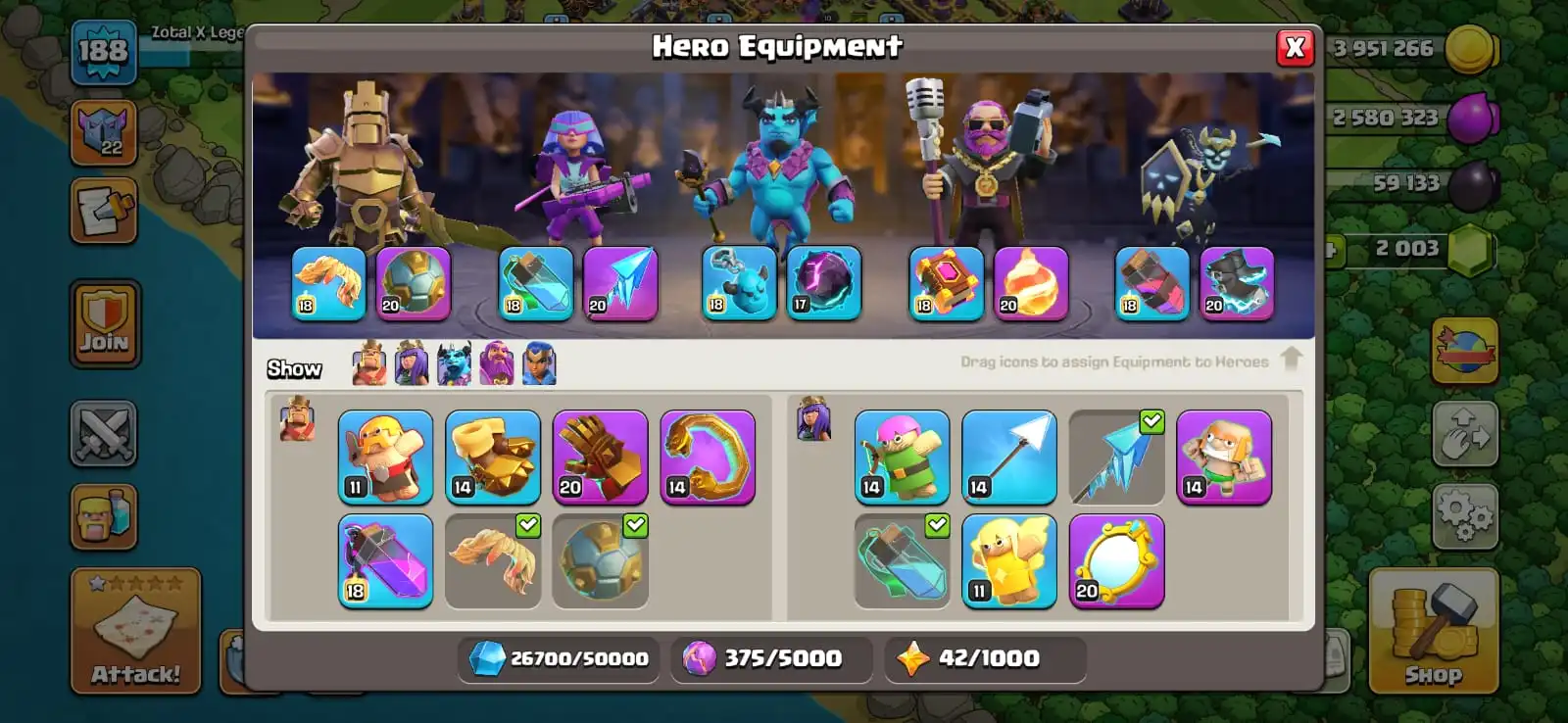 🔥 TH16 [Nearest Maxed Premium Base] || ⚔️ Heroes-92/90/57/67/42 || 🔥 XP Level 188, War Stars 700+, Name Change Available, Legendary Hero Skins || 🔥 Good Hero Equiqments, Nearest Maxed Walls || Android/IOS Ready 🔥 ||