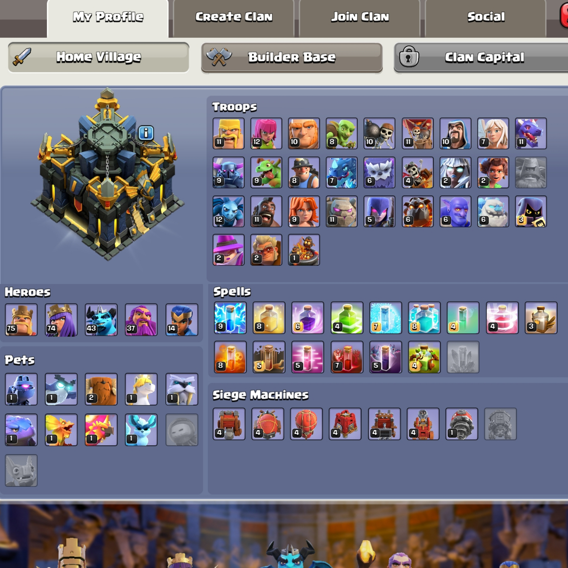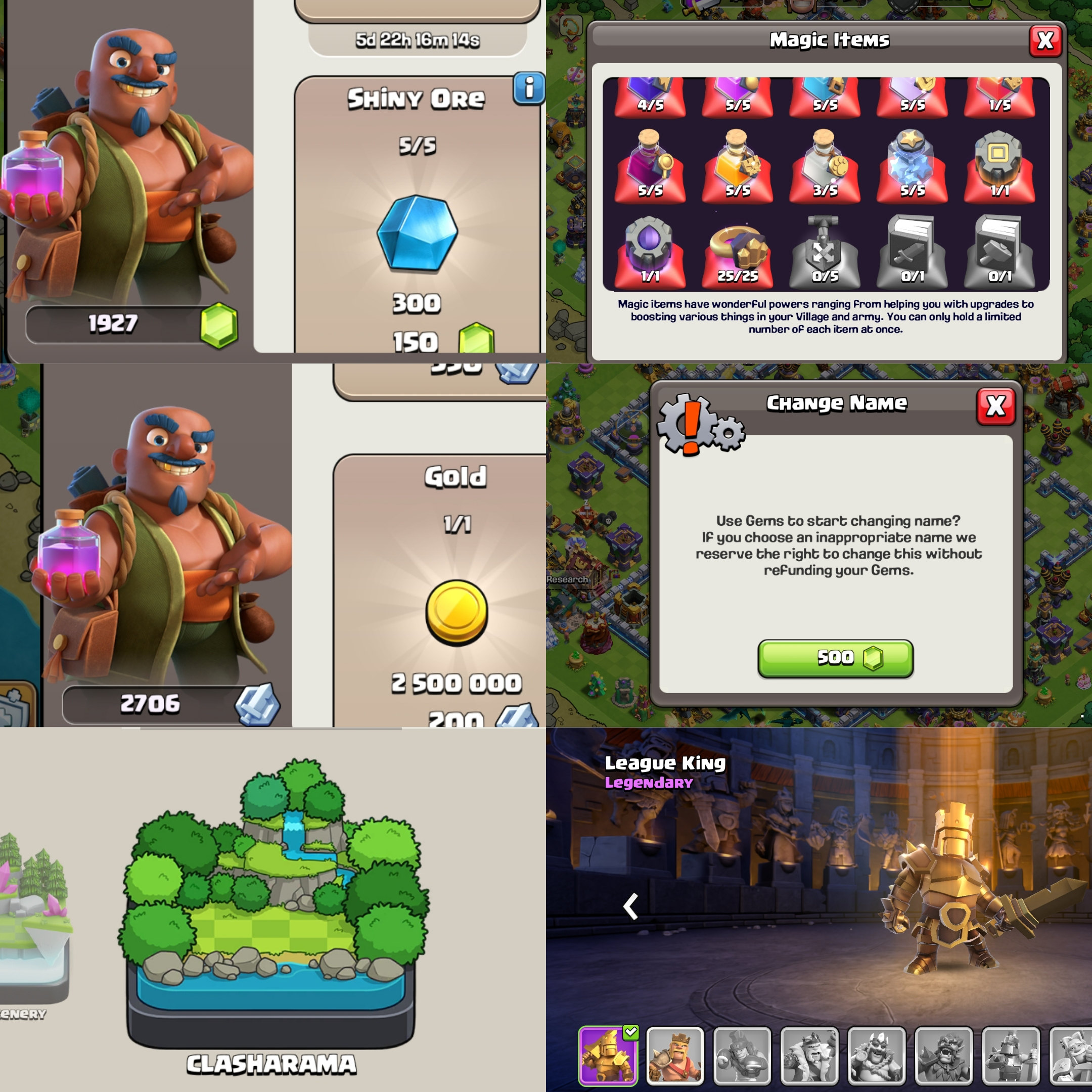⭐ TH17 ⭐ KING LEAGUE SKIN ⭐ HIGH DEFENSE & BLUE WALLS ⭐ HEROES K-75 AQ-74 MP-43 GW-37 RC-14 ⭐ 6 EPIC EQUIPMENT ⭐ NAMECHANGE AVALIABLE ⭐ 1900 GEMS