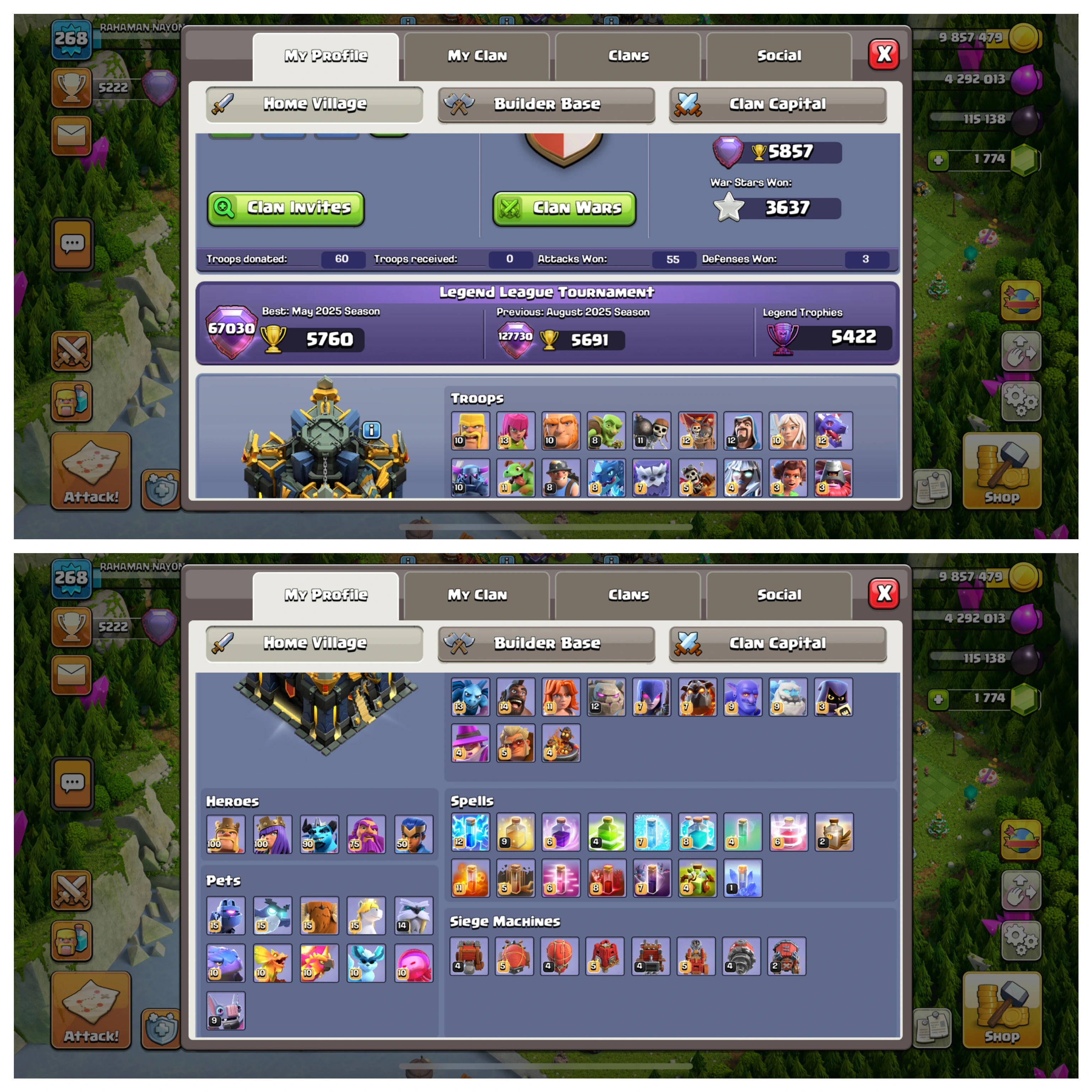 UK / GB LOCAL ✅ TH 17 FULL MAX ✅ XP-268 (HIGH XP LEVEL) ✅CLASH OF DRAGON SCENERY ✅ 05 HEROES & 11x PETS MAX ✅ 04 EPIC MAX, 2-23, 2-20, 3-14 (11x EPIC All GOOD LVL) ✅ UNITED KINGDOM ✅ 15x SKINS ✅ FEW BOMB LEFT ✅ANDROID & IOS