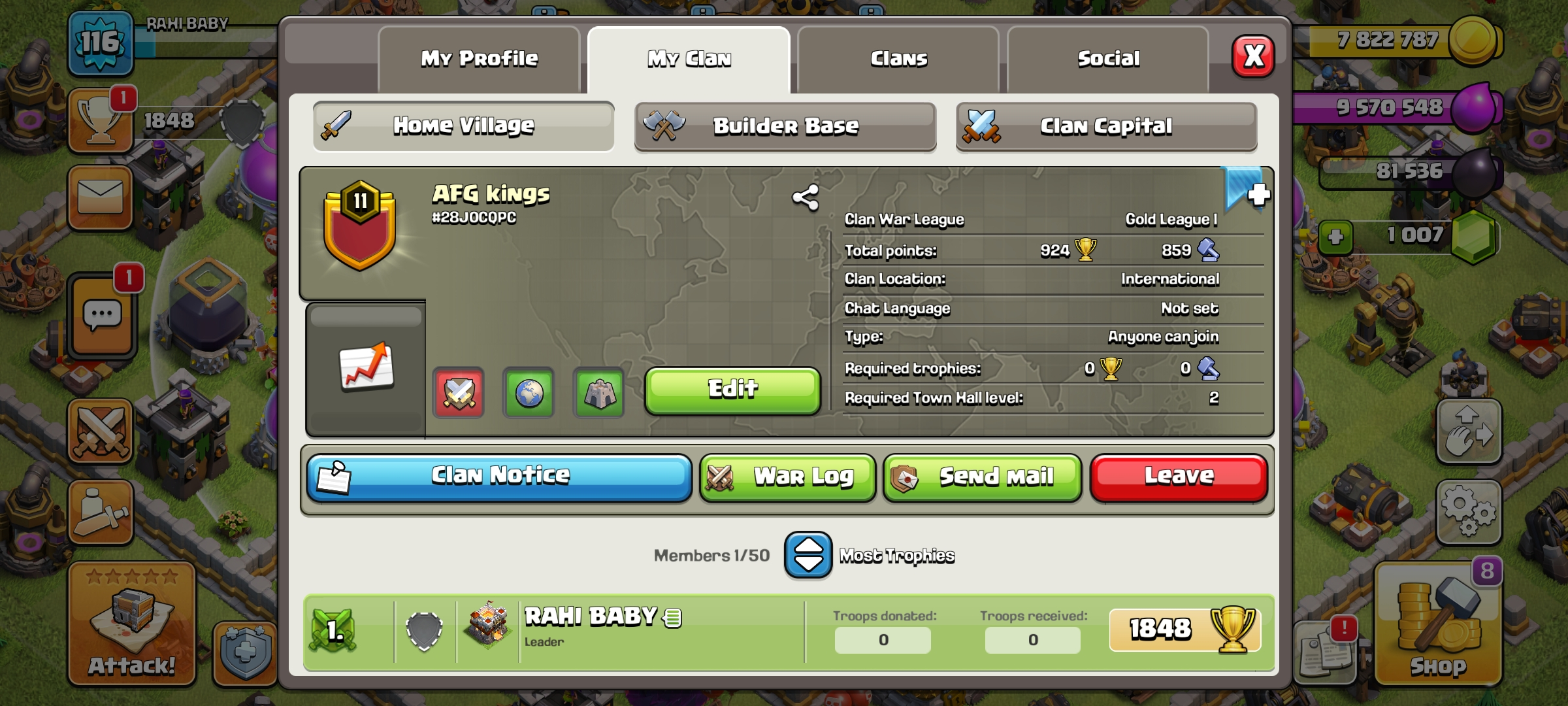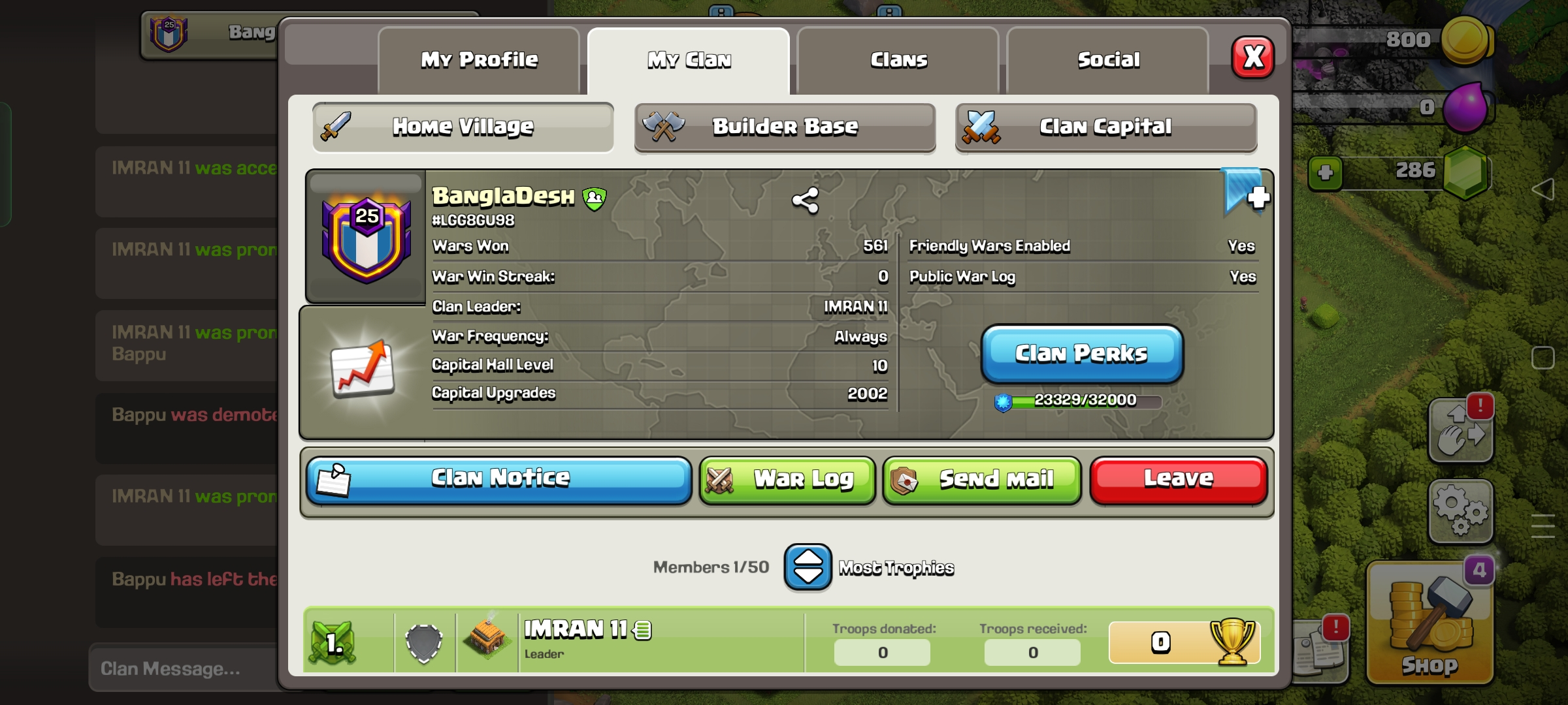 Clan name- Chinese __Clan LvL- 22+ __ Master 3 __Capital hall- 3 __ Win- 175 _loss- 414 __ Troops max __ Rear Name __fast Delivery