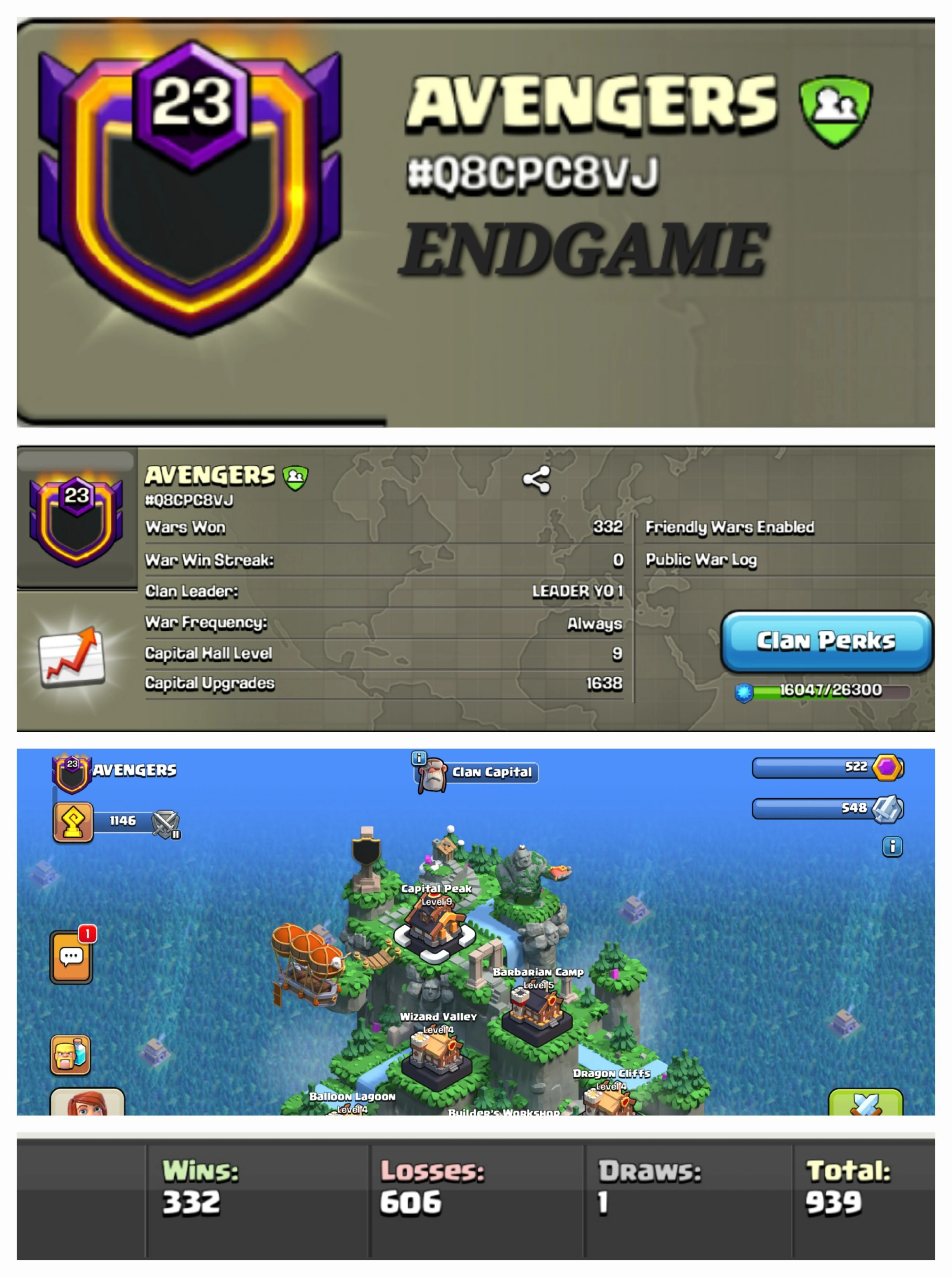 AVENGERS !! LEVEL 17 !! WIN 277 LOSS 226 !! CAPITAL PEAK 7 !! GOLD LEAUGE 1 !! MOST DEMANDING NAME !! PERFECT NAME !! CHEAP !! FAST DELIVERY