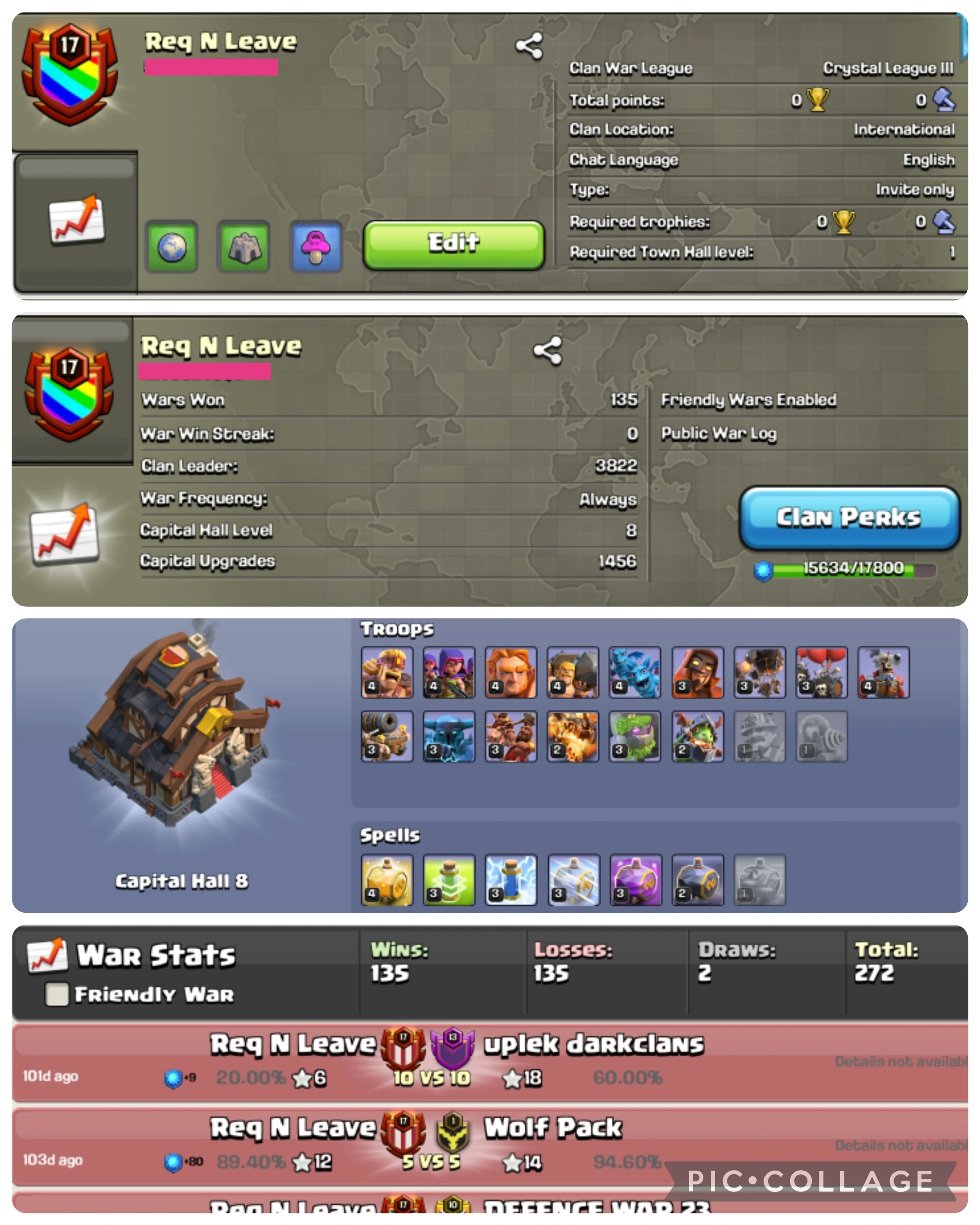 🫶CC 8 + CRYSTAL 3 😍REQ N LEAVE 🥰 LEVEL 17.9 🤗 135 WINS 135 LOSSES 135 DRAWS 🫠