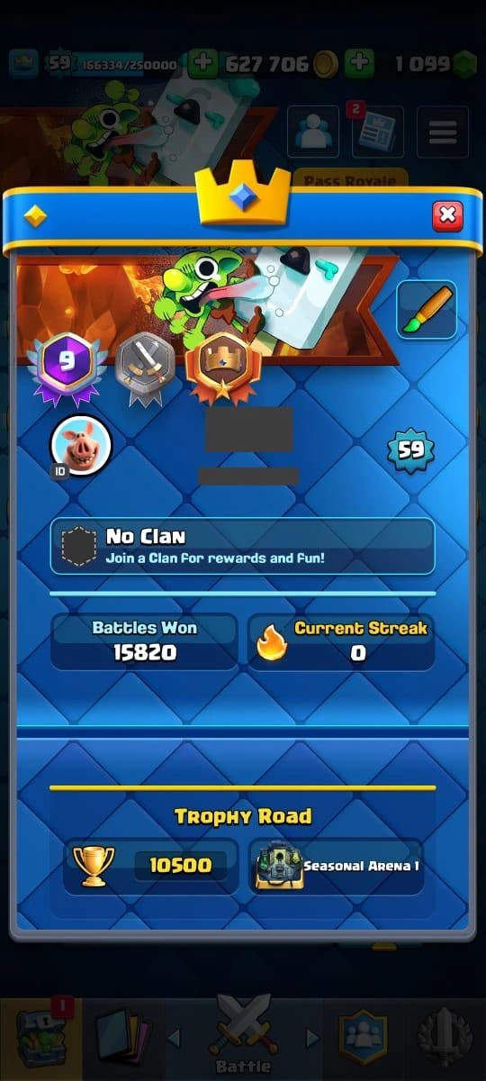 10 500 Trophies | XP Lvl 59❗️| 98 MAXED CARDS❗️| 18 ELITE LEVEL CARD ❤️🔥| 14 EVOLUTIONS📈 | 54 EMOTES | 100% safe account | instant delivery