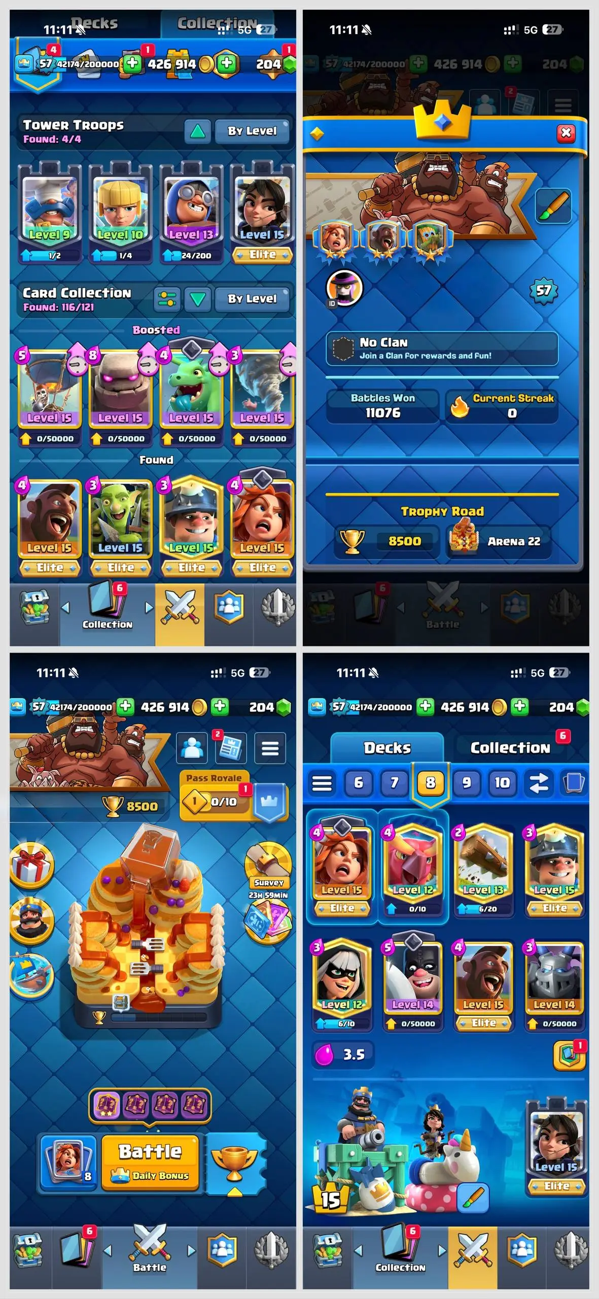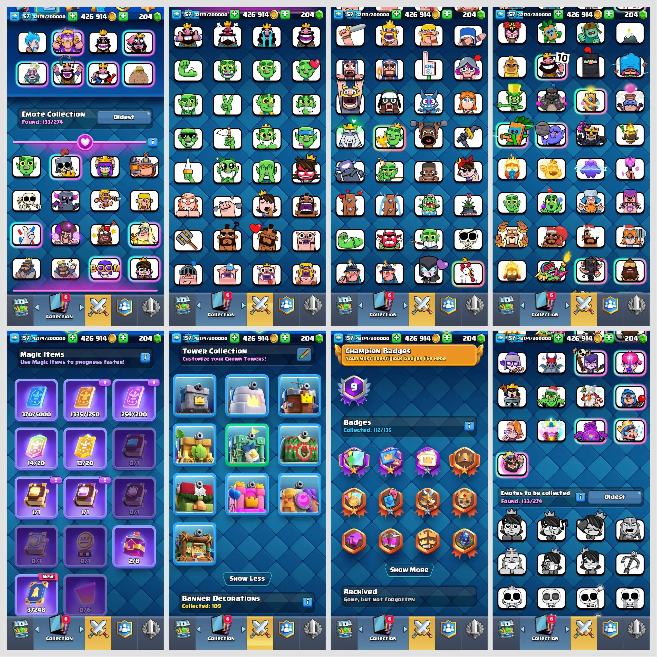 🔥 133 Rarest Emotes 🎭 (Includes Goblin Kiss Trophy Emote 🏆💋) | 9Y Old 😳 | 82 Max Cards 🎴 10 ~ KT SKINS | 💥KT15 👑 | XP57 ⭐️ | 8.5K Trophies 🏆 | INSTANT Delivery 🚀