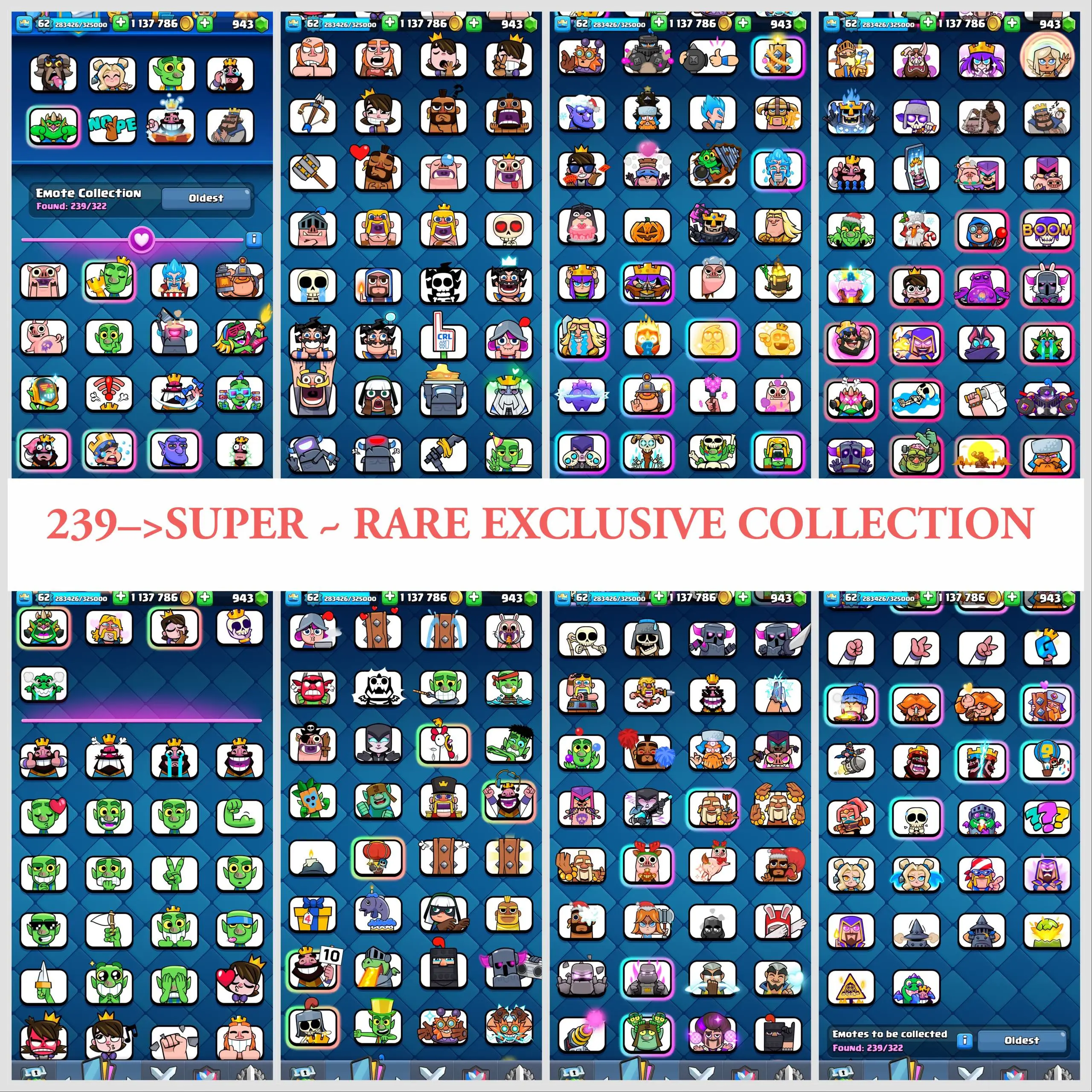 ✨🔥 239 Rarest Emotes 🎭 (Includes Goblin Kiss Trophy Emote 🏆💋) | FREE TH16 Linked 🏰 | 9Y Old 😳 | 116 Max Cards 🃏 | 18 Evos ⚡️ | 32 Elite 🎴 | KT15 👑 | XP62 ⭐️ | 10K Trophies 🏆 | INSTANT Delivery 🚀