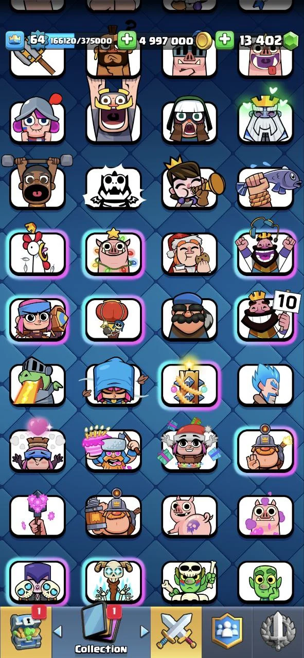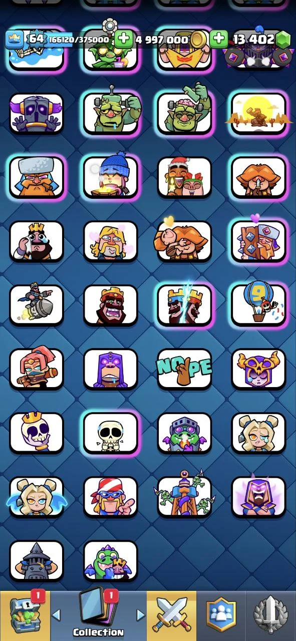 30% OFF ✨ RARE EMOTES ✨ KT 15 🔱 LVL 64 🏆 CUPS [10900] ✨ MAX CARDS [111] ✨ ELITE [42] ✨ EVO [18] ✨ LVL 14 [69] ✨ GEMS [13000] ✨ELITE WILD CARDS[3.6Lakh] ✨ EMOTES [138] ✨ SKINS [17] 🔱 CARDS [121] ✨ 10000% SAFE