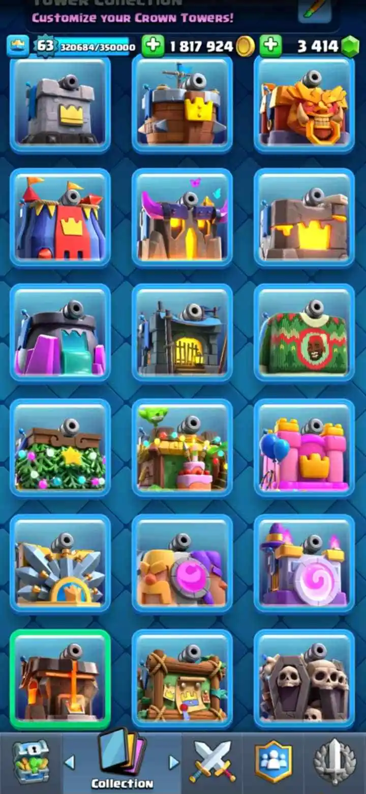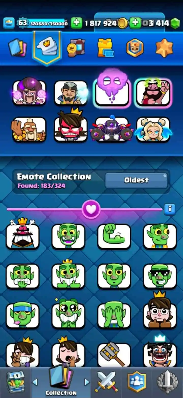 63 xp🔥20 evo🔥40 elite🔥113 card max🔥3500 Gems🔥20x tower skin🔥fresh email