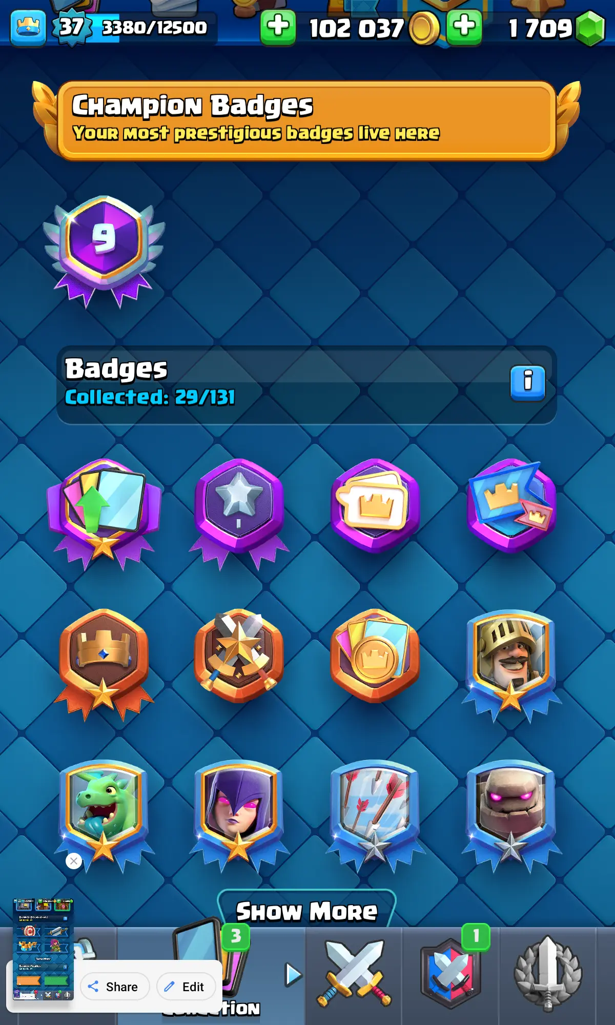 🏆 6595 Trophies | 🪬 KT 12 | 🌙 Arena 18🫶🏼 Level 37 | 🎭 13 Emotes | 💫 Master 1 Rank
