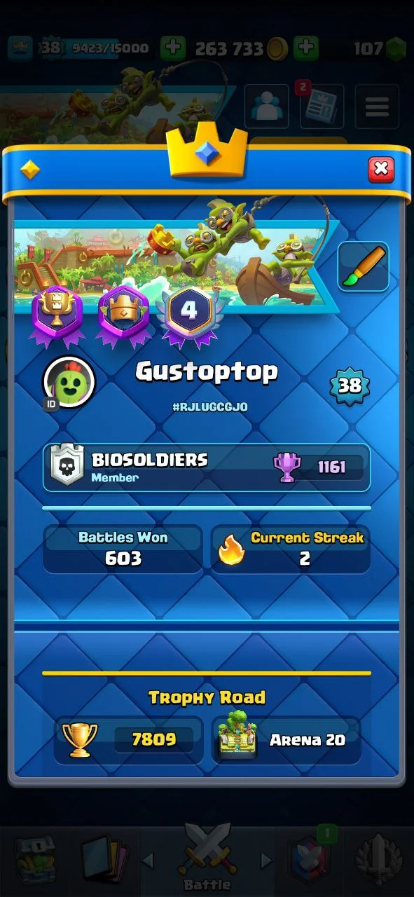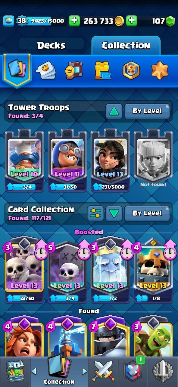 7809 TROPHIES ✨ 13 KING TOWER 🤑 38 LVL 💎 117 CARDS 💎 40 EMOTE 💎 6 EVO CARDS 🤑 0 MAX CARDS 👑 ANDROID & IOS 👑 INSTANT DELIVERY