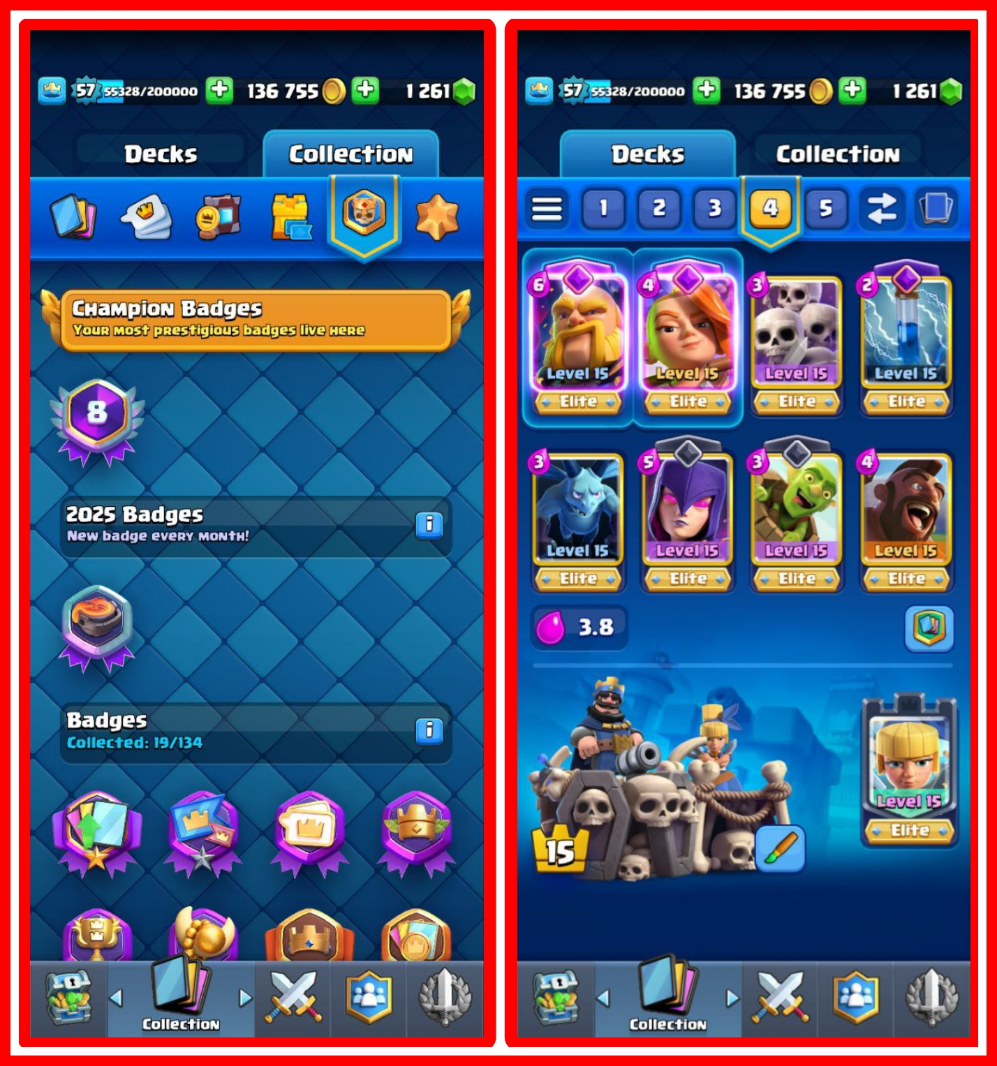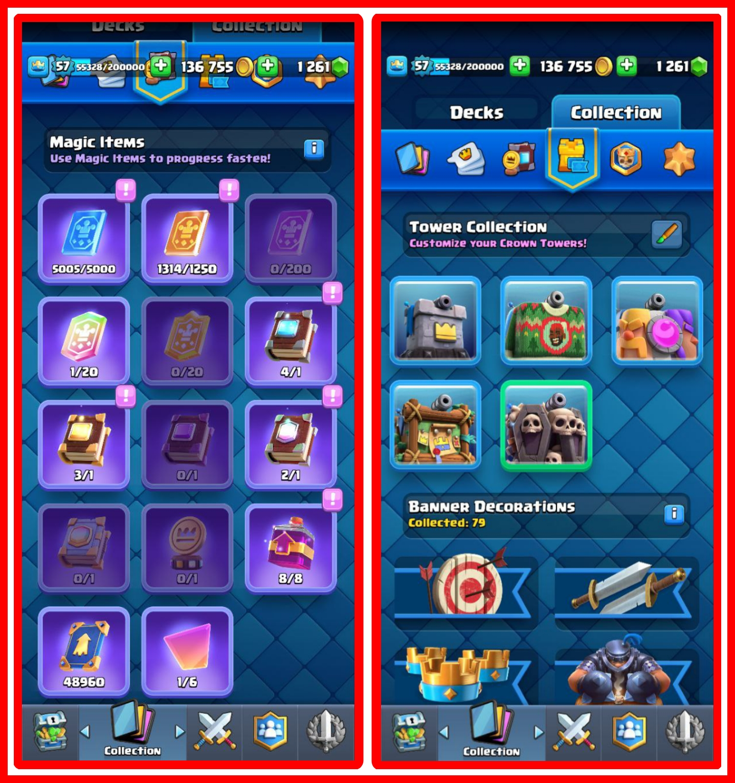 😮8 YEARS BADGE 👑 GOBLIN KISSING TROPHIES 🏆 12450 TROPHIES🔥KT 15 ✨ LVL[57] 🔱 ARENA 25 🛢️ELITE CARDS [13]🏷️ MAX CARDS [51] ✌ EMOTES 84[ 🔱 CARDS [121] 🪄 LODED MAGIC' ITEM'S🧪 EVO[13]✨SKINS 05 🎖️FREE NAME CHANGE 🏅100%SAFE 🔷 CHEAPEST IN MARKET