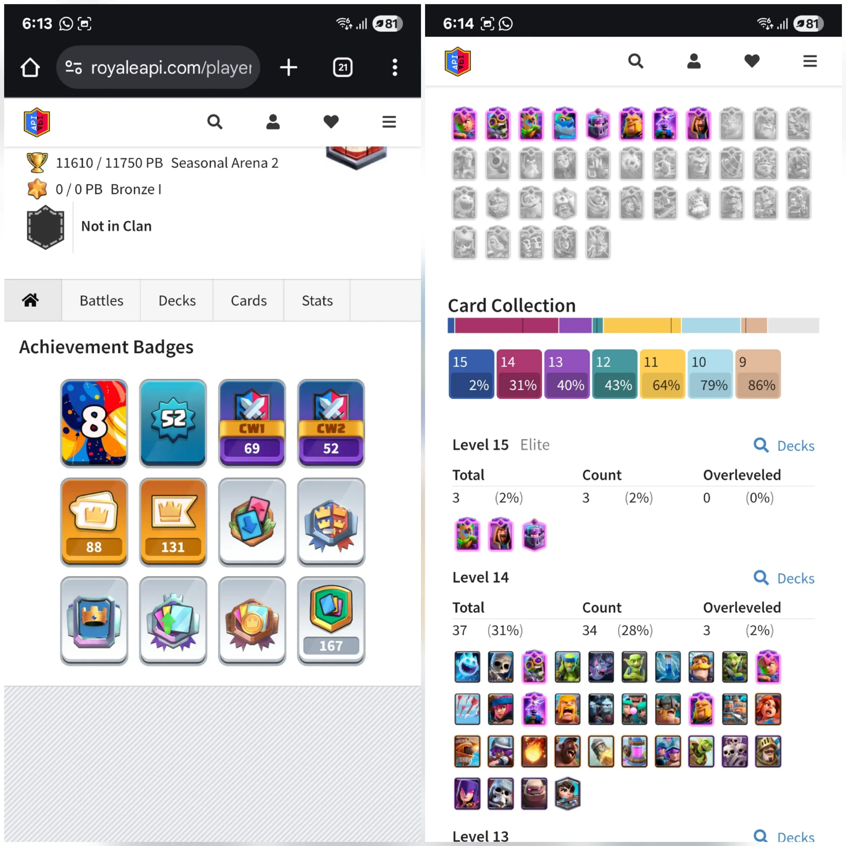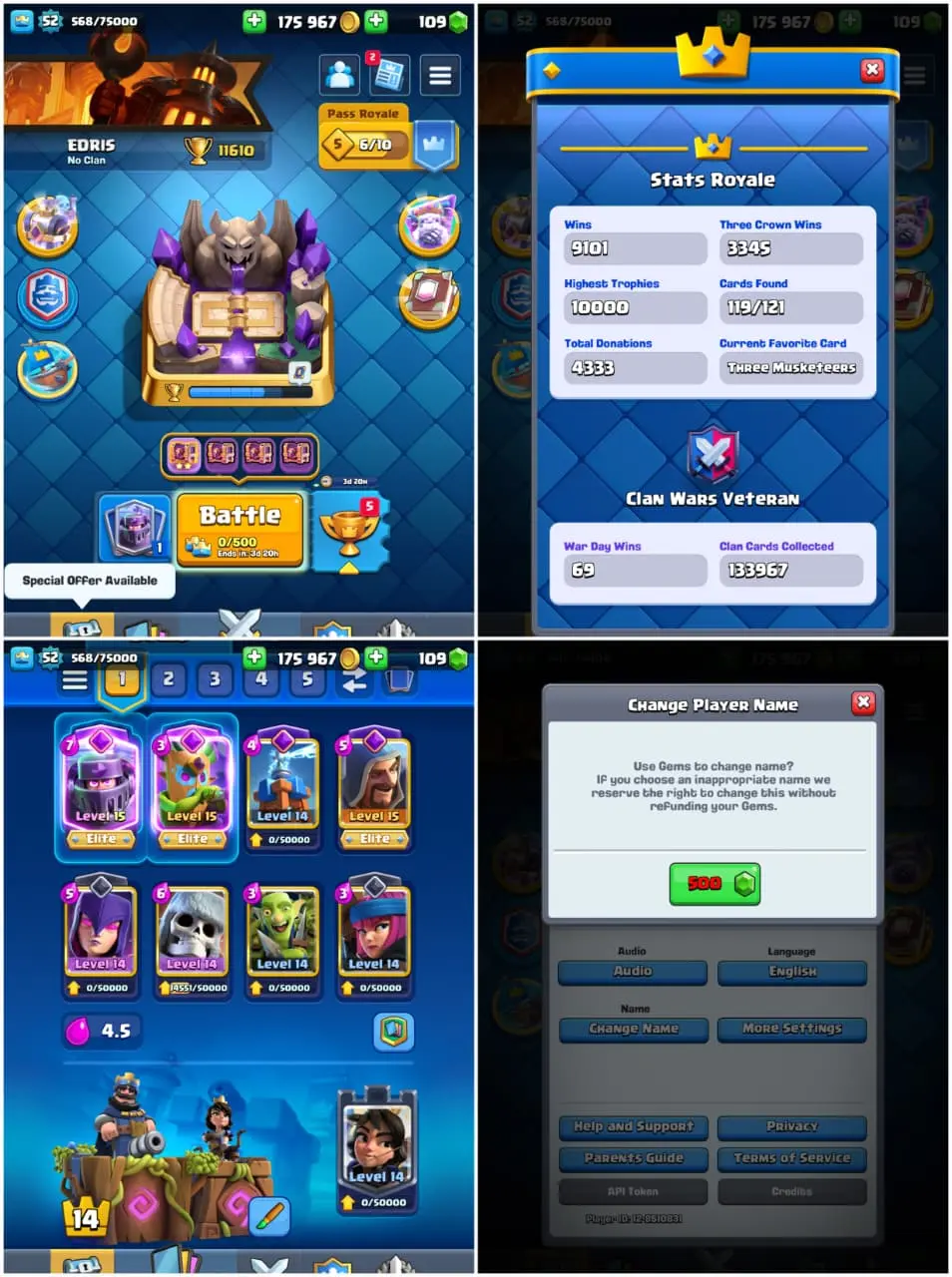 🎖️ [ 8 Years Played Badge ] 💥 Level 52 🏰 KT 14 | 😎 88 Emotes 🏆 11600 Trophies ⚔️ 37 Max Cards {3 Elites}  🌀 8 Evos 🎨 61 Banners &  70 Frames 📱 Android & iOS  ⚡ Instant Delivery