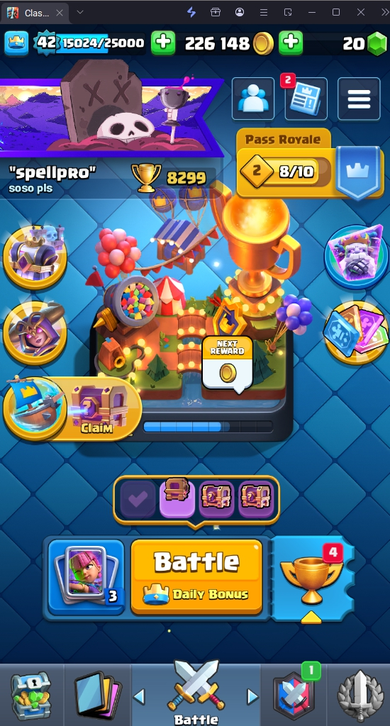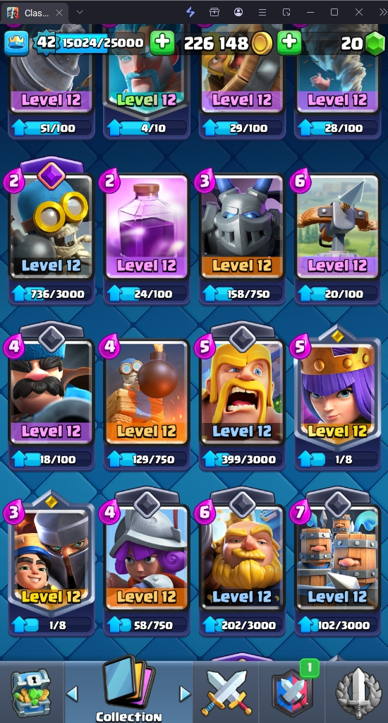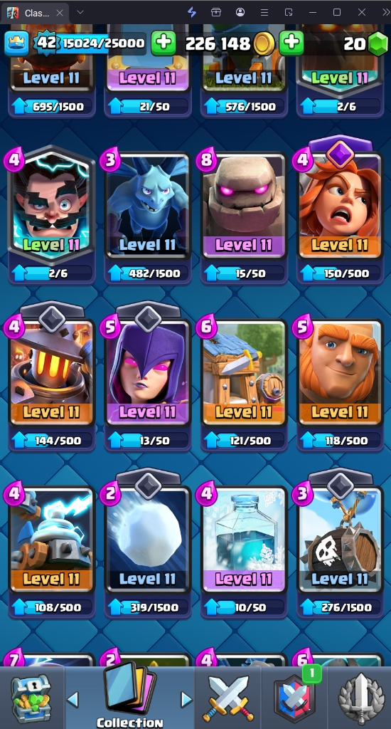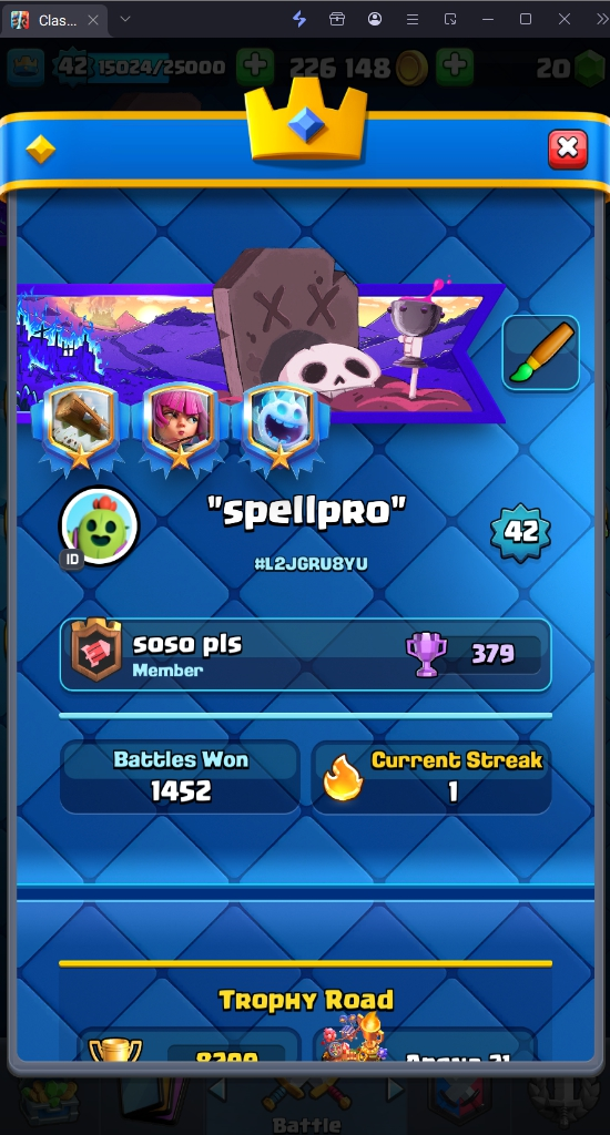 8299 TROPHY 🏆 42 LVL 💯 KT 14 👑 120 CARDS ♦️ 8 MAX CARDS 👑 6 ELITE CARDS 🔮 8 EVO 💯 EMOTE 49 🎭 #L2JGRU8YU ⸱ TAG ACCOUNT ♥️