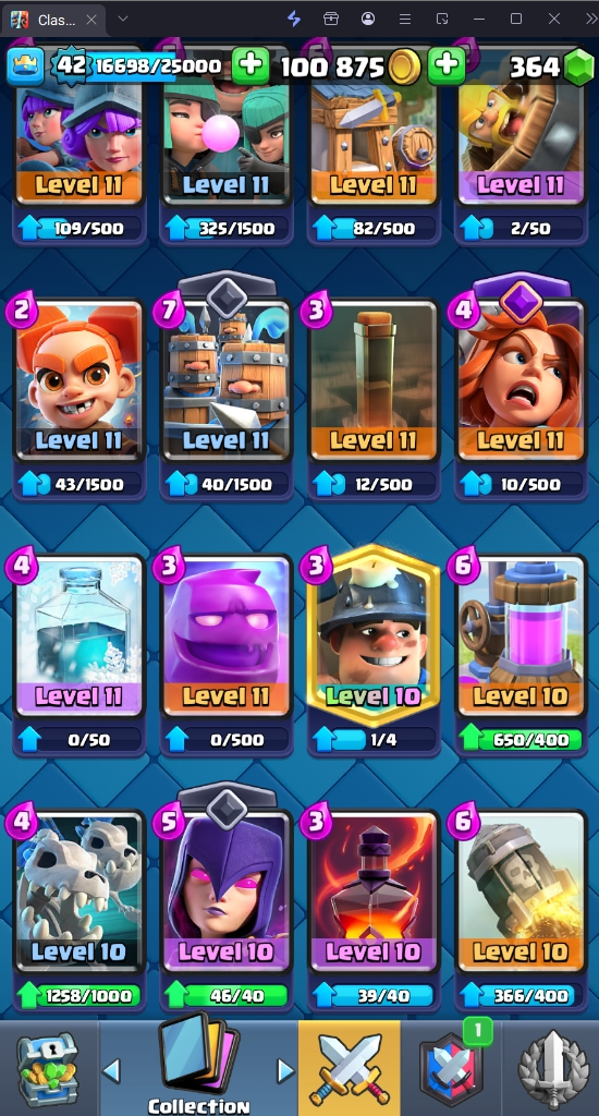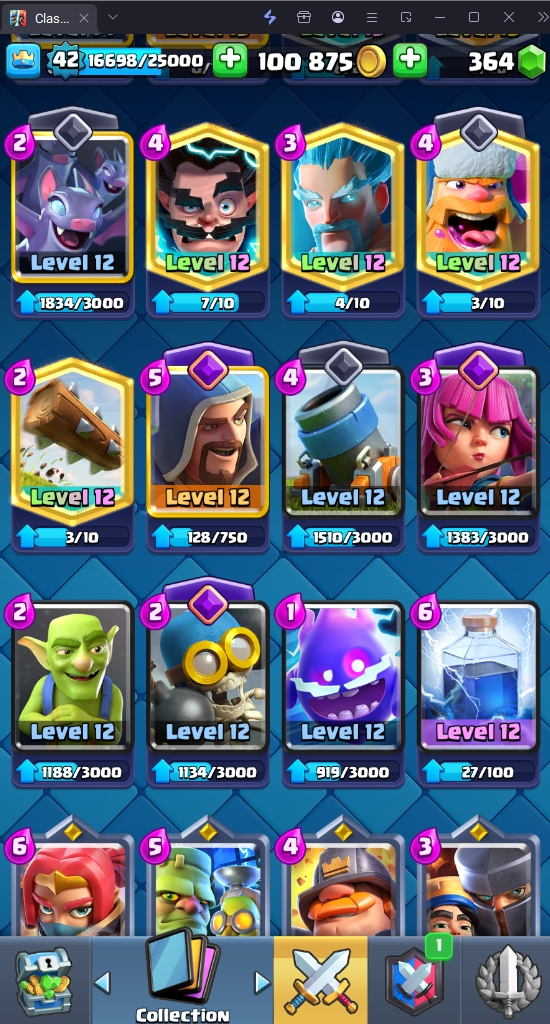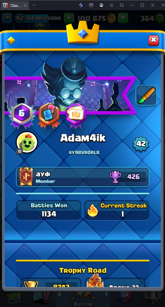 8742 TROPHY 🏆 42 LVL 💯 KT 14 👑 121 CARDS ♦️ 9 MAX CARDS 👑 3 ELITE CARDS  🔮 7 EVO 💯 EMOTE 42 🎭 #Y98VR0RL8 ⸱ TAG ACCOUNT ♥️