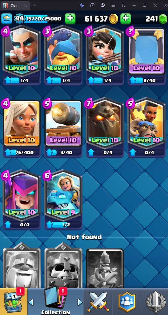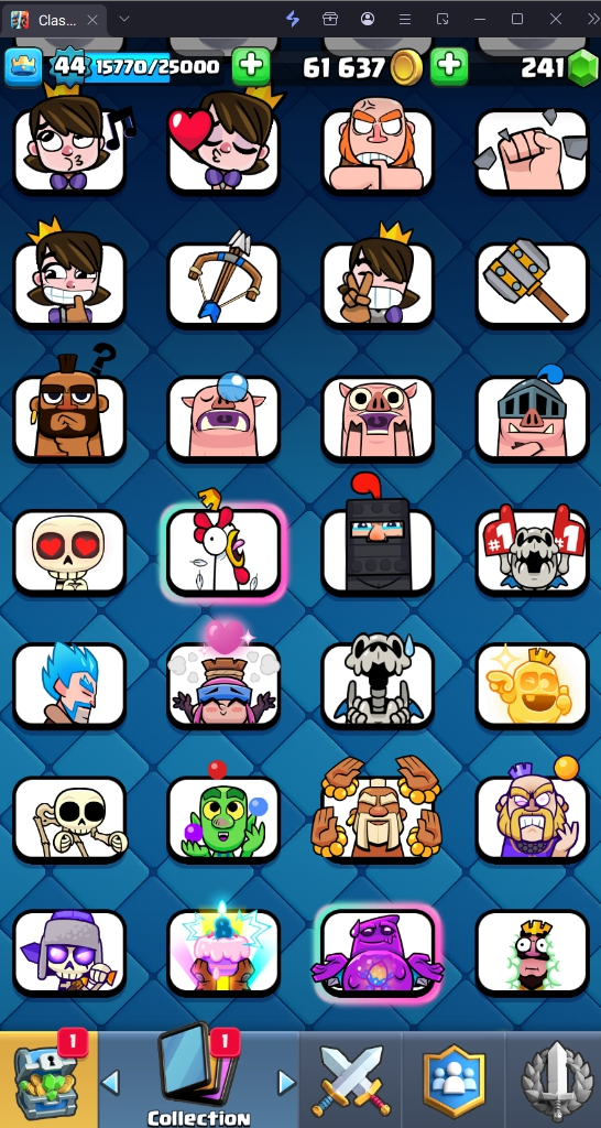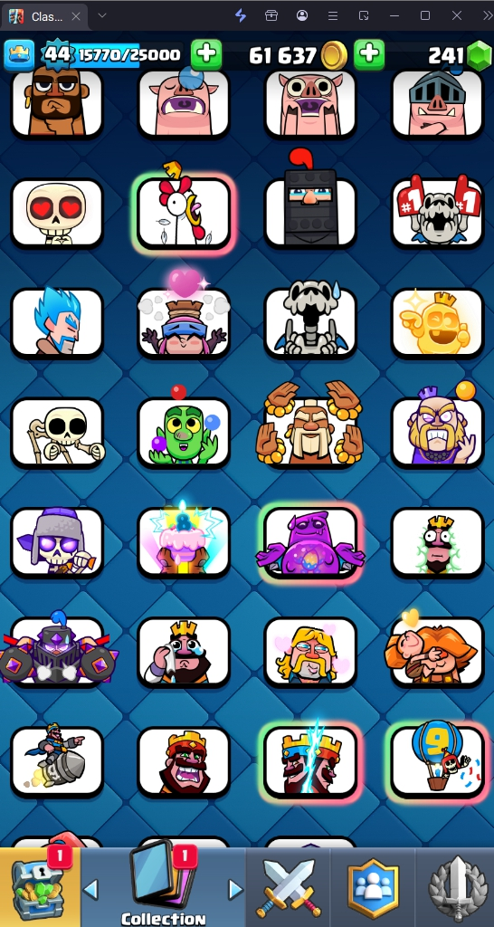 9009 TROPHY 🏆 44 LVL 💯 KT 14 👑 118 CARDS ♦️ 9 MAX CARDS 👑 1 ELITE CARDS 🔮 6 EVO 💯 EMOTE 65 🎭 #VQ2G9V8Q2 ⸱ TAG ACCOUNT ♥️