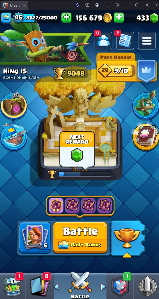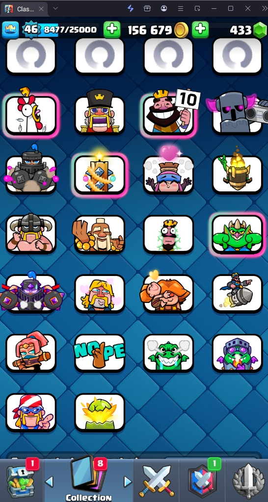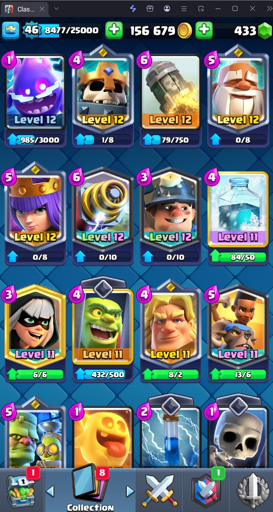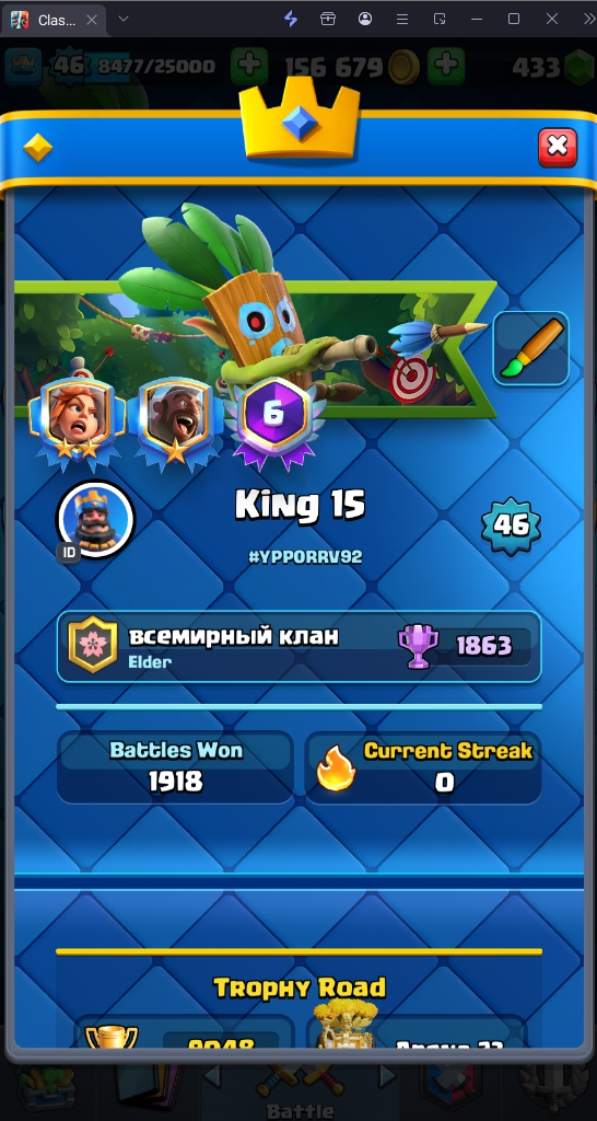 9048 TROPHY 🏆 46 LVL 💯 KT 14 👑 120 CARDS ♦️ 8 MAX CARDS 👑 2 ELITE CARDS 🔮 9 EVO 💯 EMOTE 51 🎭 #YPP0RRV92 ⸱ TAG ACCOUNT ♥️
