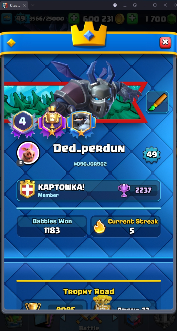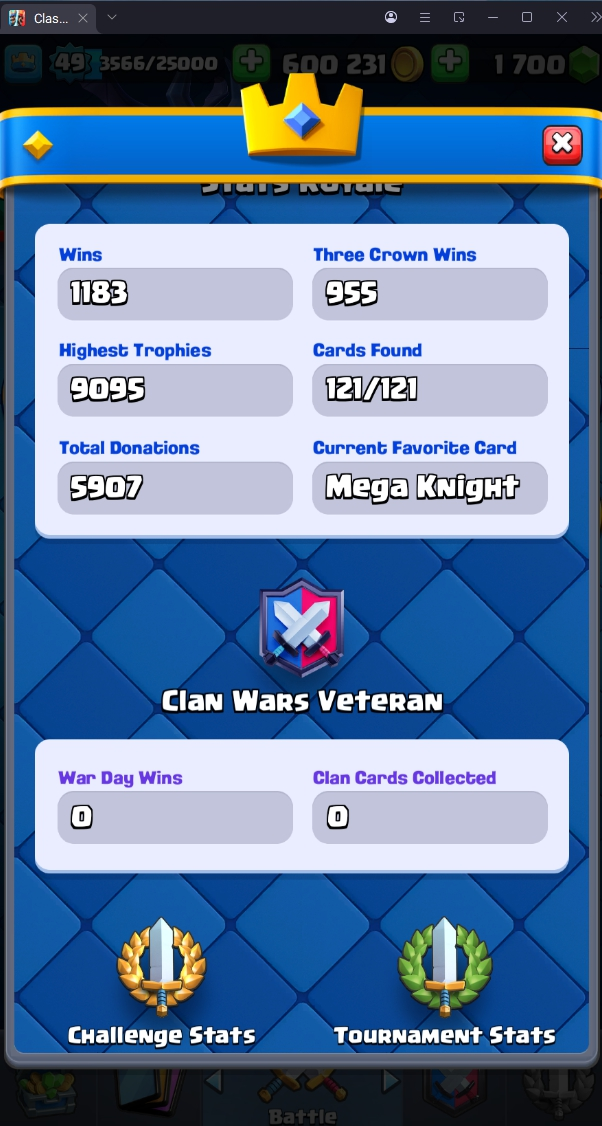 9095 TROPHY 🏆 49 LVL 💯 KT 14 👑 121 CARDS ♦️ 8 MAX CARDS 👑 4 ELITE CARDS  🔮 10 EVO 💯 EMOTE 40 🎭 #Q9CJCR9C2 ⸱ TAG ACCOUNT ♥️