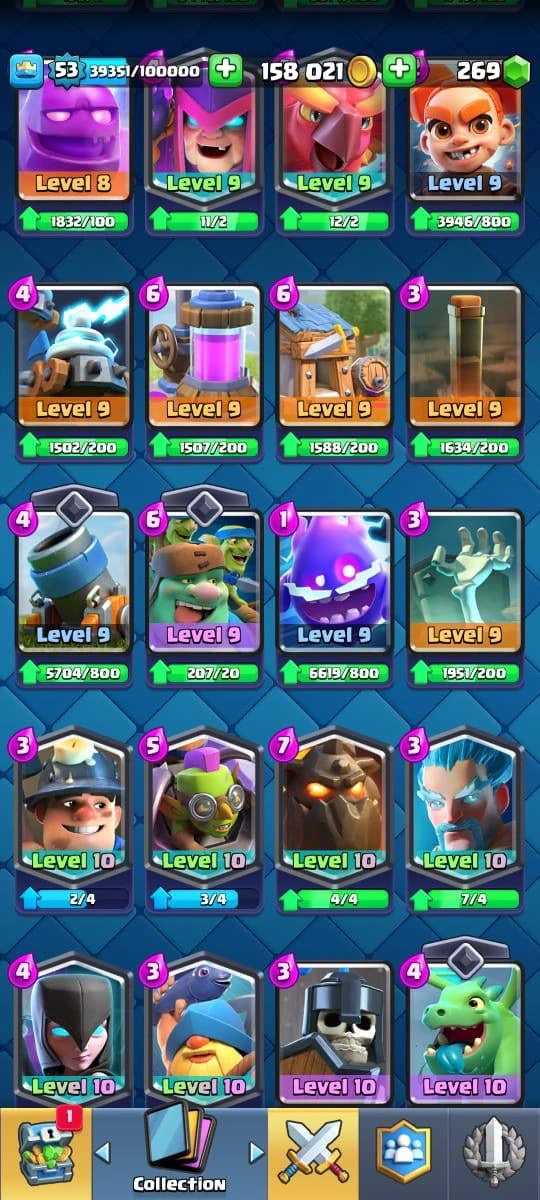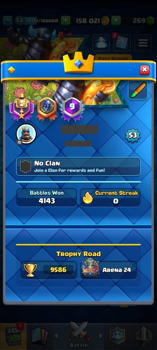 9586 Trophies | XP Lvl 53❗️| 34 MAXED CARDS❗️| 4 ELITE LEVEL CARD ❤️🔥| 10 EVOLUTIONS📈 | 80 EMOTES | 100% safe account | instant delivery