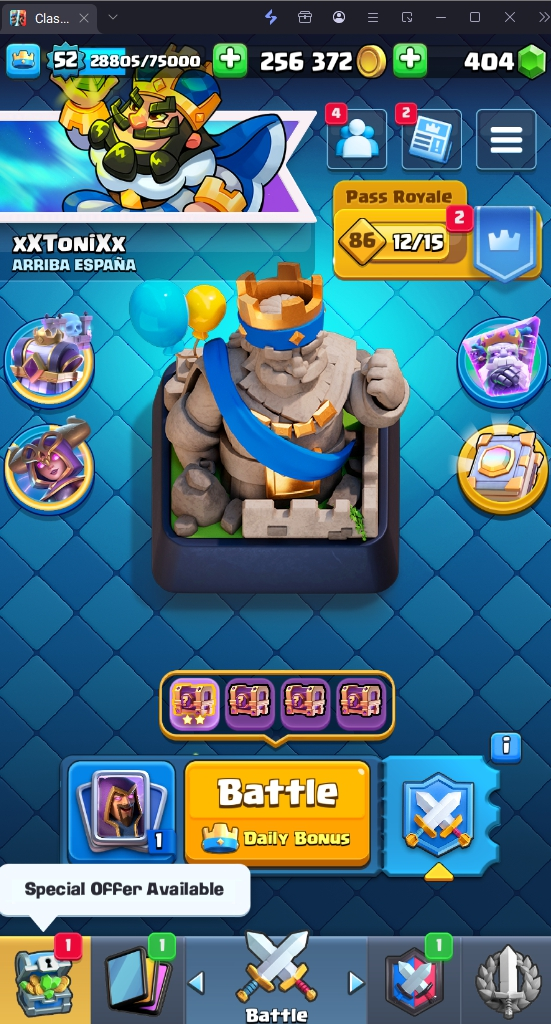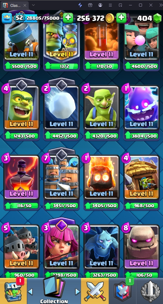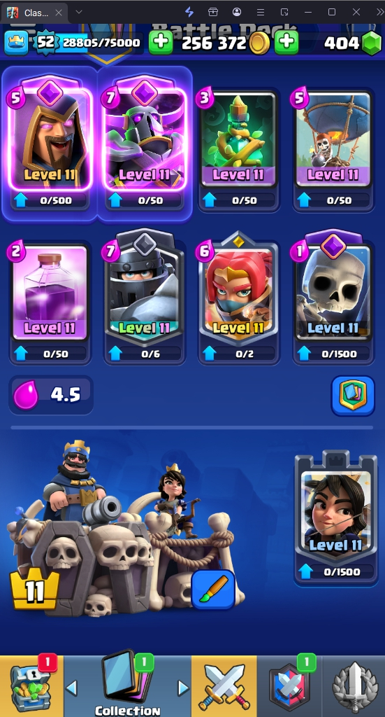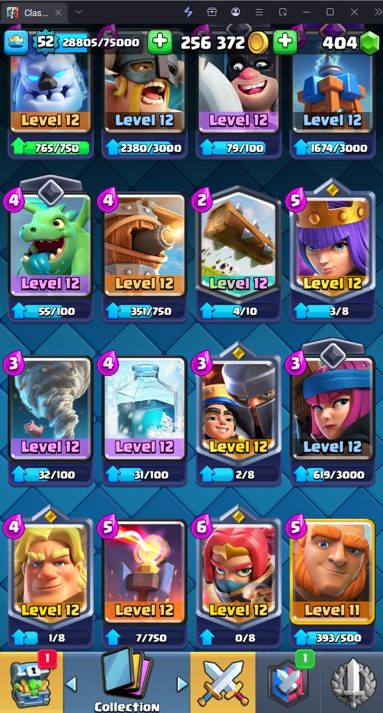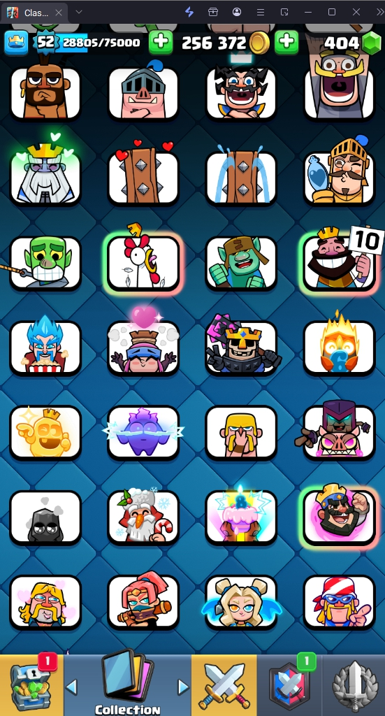 9665 TROPHY 🏆 52 LVL 💯 KT 14 👑 121 CARDS ♦️ 13 MAX CARDS 👑 4 ELITE CARDS 🔮 12 EVO 💯 EMOTE 55 🎭 #28988JYQG ⸱ TAG ACCOUNT ♥️