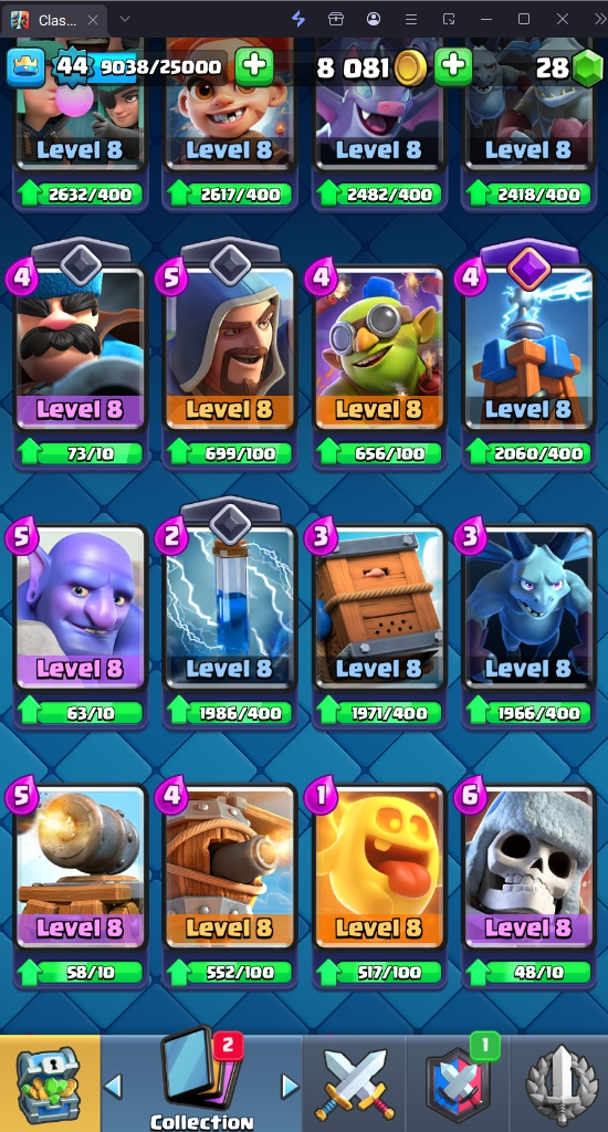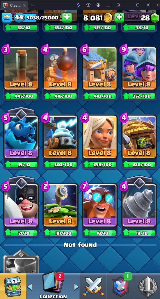 9827 TROPHY 🏆 44 LVL 💯 KT 14 👑 120 CARDS ♦️ 3 MAX CARDS 👑 3 ELITE CARDS 🔮 8 EVO 💯 EMOTE 47 🎭 #UGYGY9JVC ⸱ TAG ACCOUNT ♥️