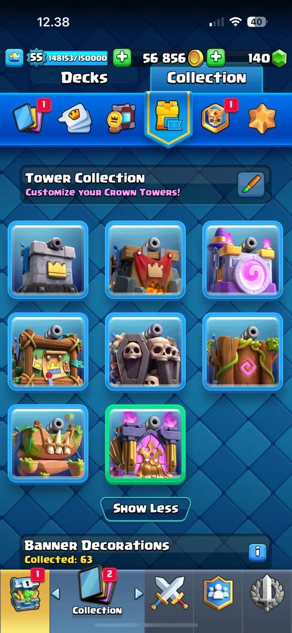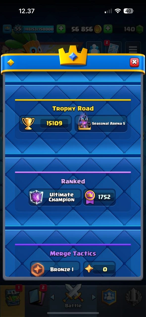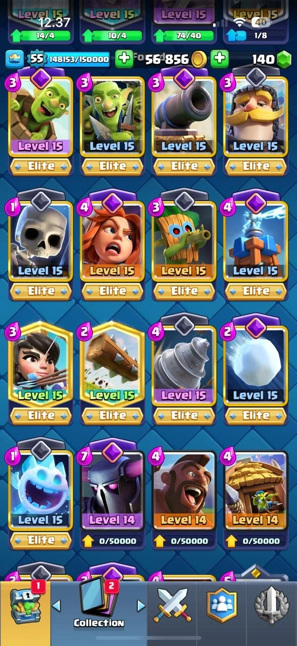 CR XP 55🔥KT15🔥13 Elite🔥16 Max Card🔥17 Evo🔥64 Emotes🔥7 Skins tower🔥15109 Trophies🔥Acces Full🔥Cheapest and Safe Account